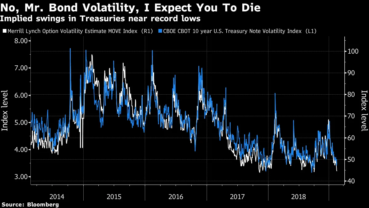 债券空头可能会被 打击,但他们 仍然受到鼓舞。如果近16万亿美元的国债市场在错误的方向醒来,其他资产类别可能不会太高兴。请记住,这只是对债券波动性可能回归的乐观看法:全球经济恶化时,收益率剧烈下跌并不是股市爱好者会欢呼的事情。