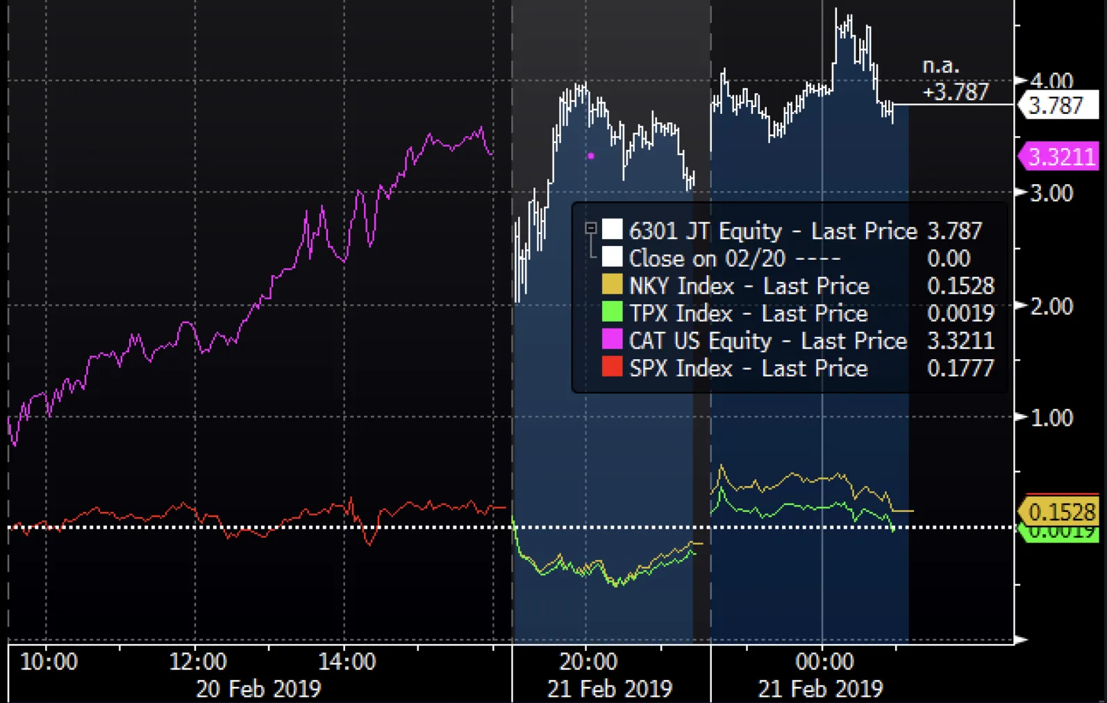 这种动态可能会被中国放大。当然,存在贸易解决的可能性,但暂时搁置这一点。全球活动的更根本驱动因素是与政策制定者去杠杆化驱动相关的世界第二大经济体的内生性放缓。卡特彼勒的工业关系负责人周三表示,需求“非常强劲”,这一言论帮助该公司的股票上涨超过3%。日本的小松,作为建筑机械制造商中仅次于卡特彼勒的公司,在下一个交易日也享受了强劲的涨幅。而XLI——美国工业部门ETF——则享受了自2016年11月唐纳德·特朗普意外当选以来的最大单日资金流入。