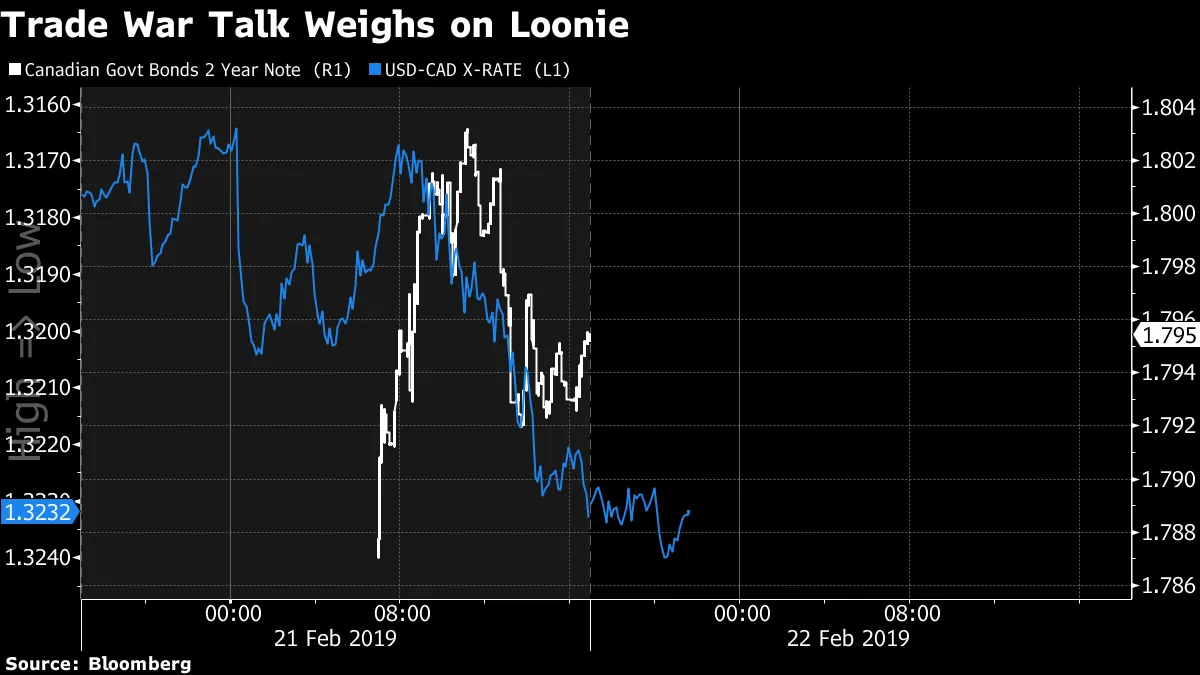 尽管如此,随着州长——前加拿大出口发展局局长——加大了全面贸易冲突对全球活动的潜在下行风险,两年期收益率和加元一起回落。