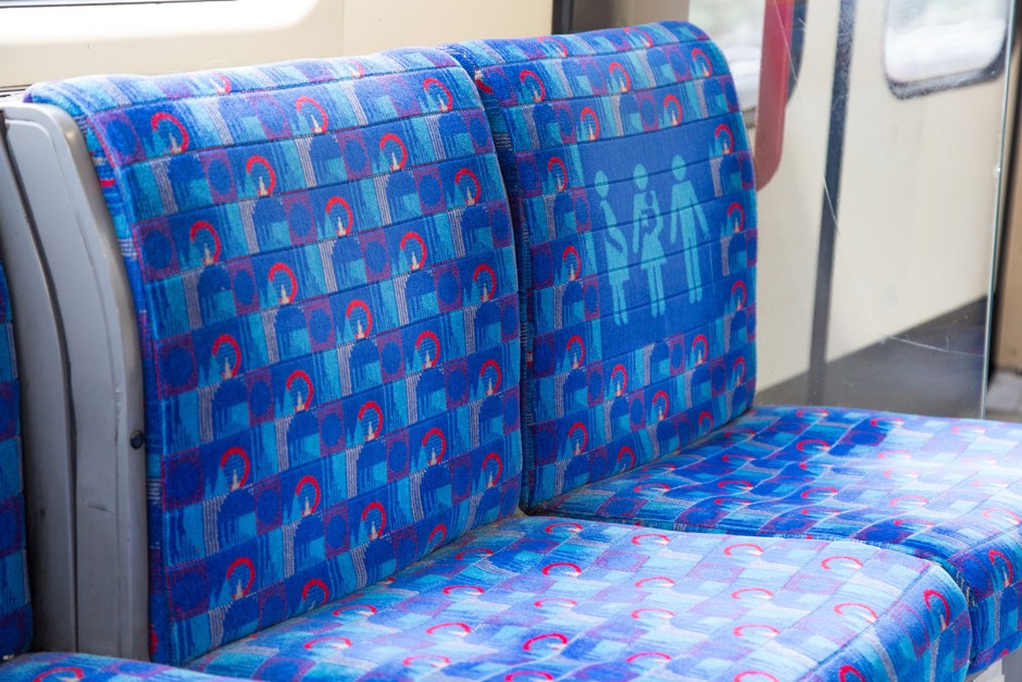 最后,还有一些功能性符号,明确座位的用途。其中最常见的是优先座位,也许周围最好的就是来自苏格兰铁路公司斯科特铁路的这些彩色座椅套。确实,它们给人一种被女性在如厕时捕捉到的图像覆盖的印象,但它们生动、没有眩光,并且使座位的功能非常明确。