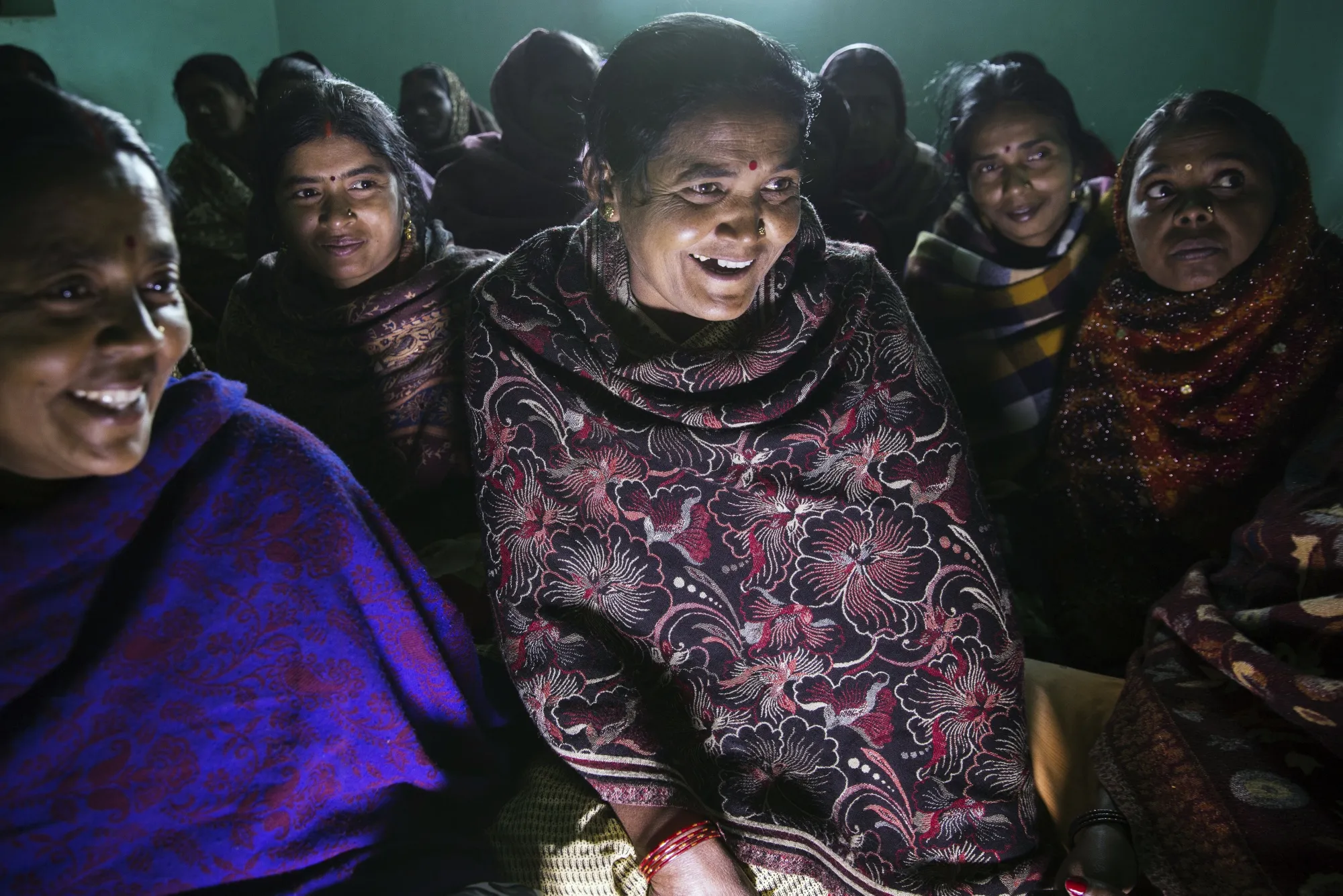 丽塔·德维(中)参加Aajeevika项目会议。摄影师:鲁哈尼·考尔/彭博社“我们试图省钱并偿还我们所借的贷款,”来自Simraoka村的家庭主妇Rita Devi说。“但我们的男人把钱都花在喝酒上。”