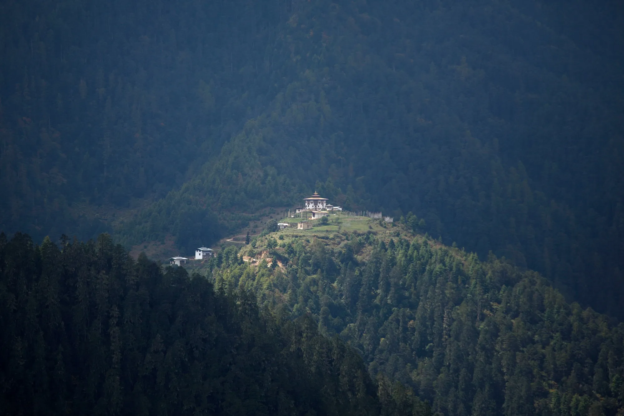 2010年10月2日拍摄的照片显示了不丹哈谷山顶上的一座修道院。哈谷位于该国西部边界,北面与中国的西藏自治区接壤。该山谷在2002年之前对游客关闭。法新社照片 / ED JONES(照片来源应注明Ed Jones/法新社/盖蒂图片社)摄影师:ED JONES/法新社### 社会