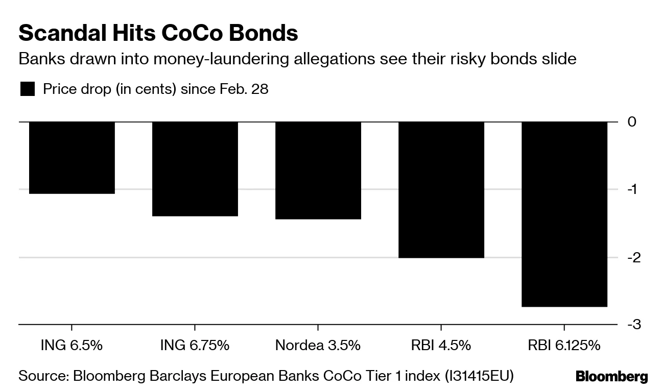 - 投资者开始 回避 涉及扩大丑闻的银行发行的风险高企的可转换债券。Raiffeisen本月在彭博巴克莱指数中表现最差。ING和Nordea也是最大的输家之一。