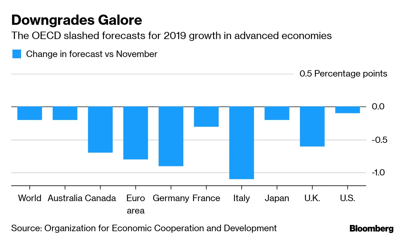 - **意大利得到了特别提及。**经济合作与发展组织将该国的预测下调至今年0.2%的收缩,这将是自2013年产出下降1.7%以来的最差表现。