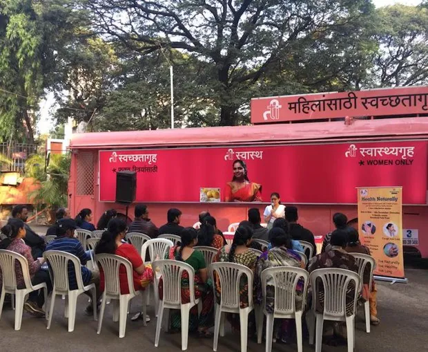 印度浦那的“Ti”女性卫生间公交车之一。由Sara Plast私人有限公司提供当女性在印度城市公共场所时,她们很难找到干净安全的地方上厕所。公共厕所稀缺,通常 肮脏,而且 大多数是为男性服务。“憋着”是 一个持续的烦恼,也是 一个健康和安全问题,尤其是对于正在月经或怀孕的女性。缺乏足够的厕所设施甚至导致一些女孩辍学。