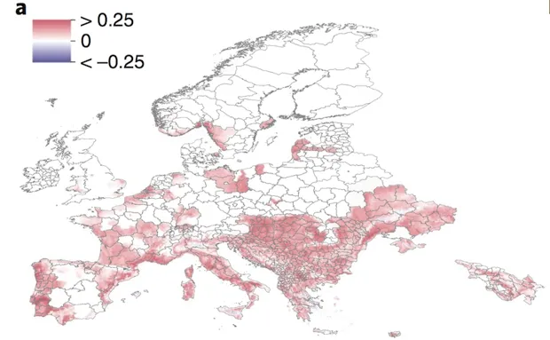 预计到2050年亚洲虎蚊在欧洲传播的地图。红色表示种群扩张,蓝色表示种群缩减。自然微生物学即使在最佳气候情景下,克雷默表示,“我们看到上升趋势,这令人担忧,因为无论我们如何调整排放,我们都将预期这些蚊子的扩张。”这将使地方公共卫生机构在有限资源和日益频繁的极端天气事件的推动下,努力应对它们已经难以控制的威胁,突发的蚊媒疾病扩散。