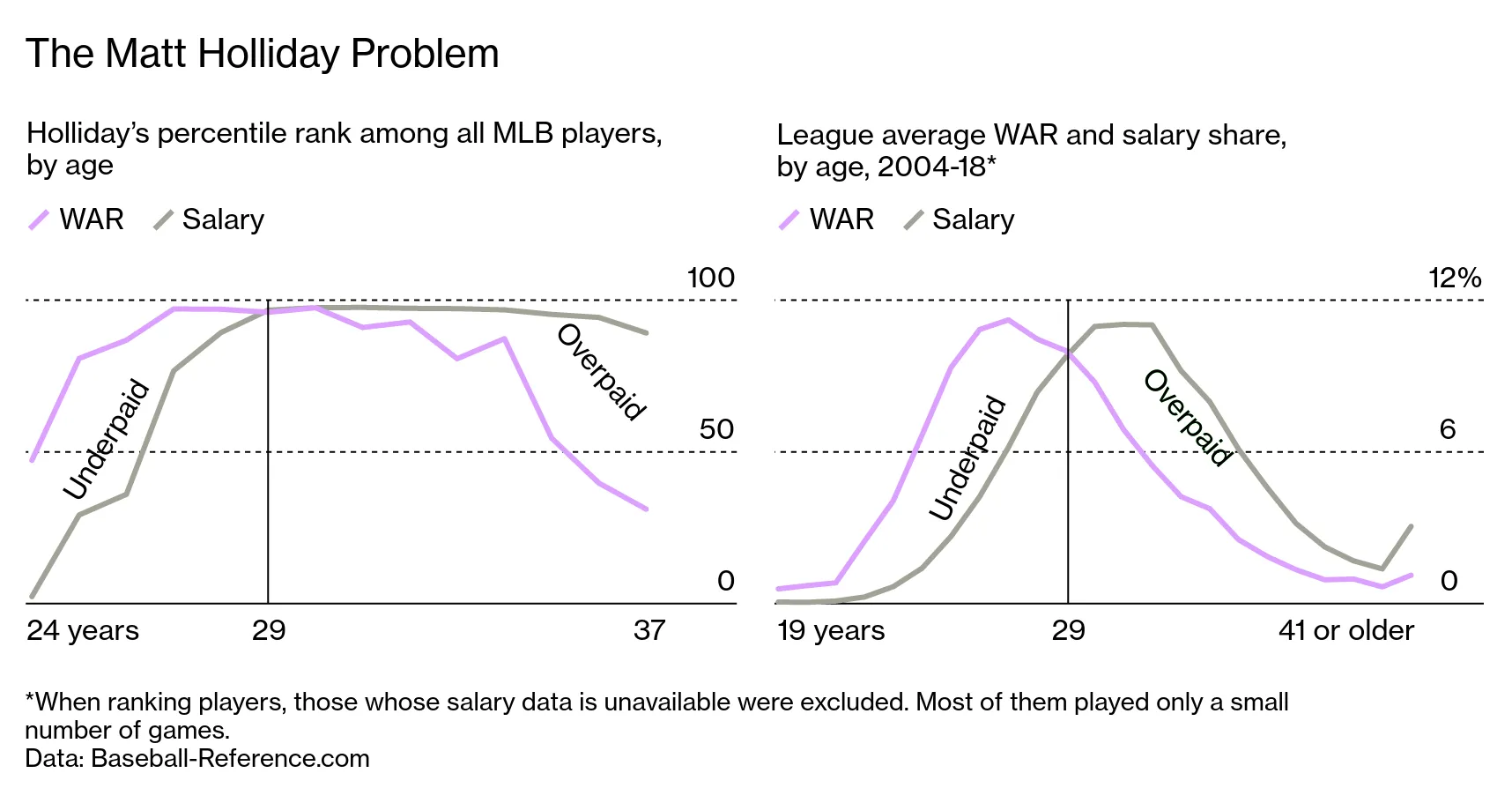 棒球老将的巨额薪水 可能即将结束。近年来,大联盟棒球中表现最差的球员获得了薪水份额的最大提升,而表现最好的球员则遭遇了最大的下降。这是一个根深蒂固的系统的结果,该系统阻止运动员在球队的前六年自由谈判,然后根据他们过去的表现给予奖励。这种安排使这个100亿美元的企业在几十年内保持稳定,但现在开始显露出压力的迹象。