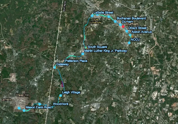 但在2016年,杜克大学官员签署了一份非约束性的谅解备忘录,以与 GoTriangle 合作。杜克在2015年和2016年的环境影响评论期间没有提出关于该路线的问题。