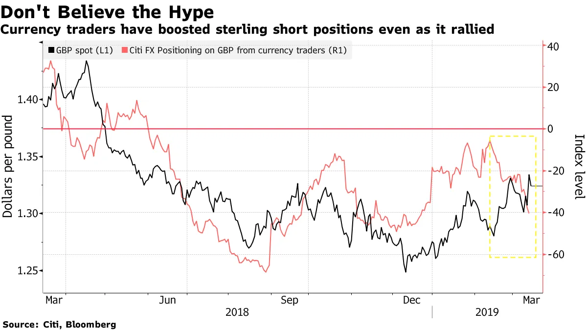 - 投资者正在加大对英镑进一步贬值的押注。来自花旗的交易者定位指标显示英镑的空头押注达到了自12月以来的最高水平,而根据市场参与者的说法,悲观押注还将进一步上升。