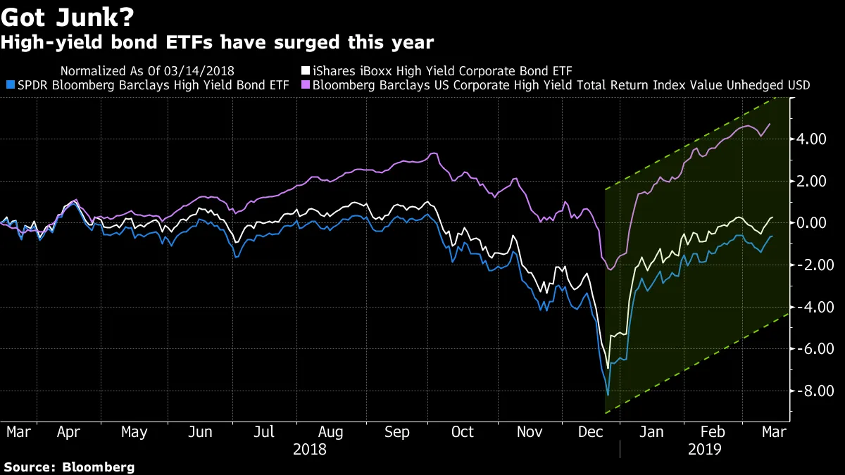 那些寻找借口重新进入信贷市场的人在油价和股市上涨中找到了机会。这一提振足以抹去近期垃圾债券的损失。本周,衡量保护投资级和投机级美国公司债券免受违约影响的指数降至自十月以来的最低水平。价值93亿美元的SPDR彭博巴克莱高收益债券ETF连续七天出现资金流入,这是六个月以来最长的连续流入期。自3月5日以来,该产品已注入近11亿美元。同样,贝莱德的iShares iBoxx高收益公司债券ETF也连续三天出现资金流入,投资者在周三之前向该基金增资超过843亿美元。