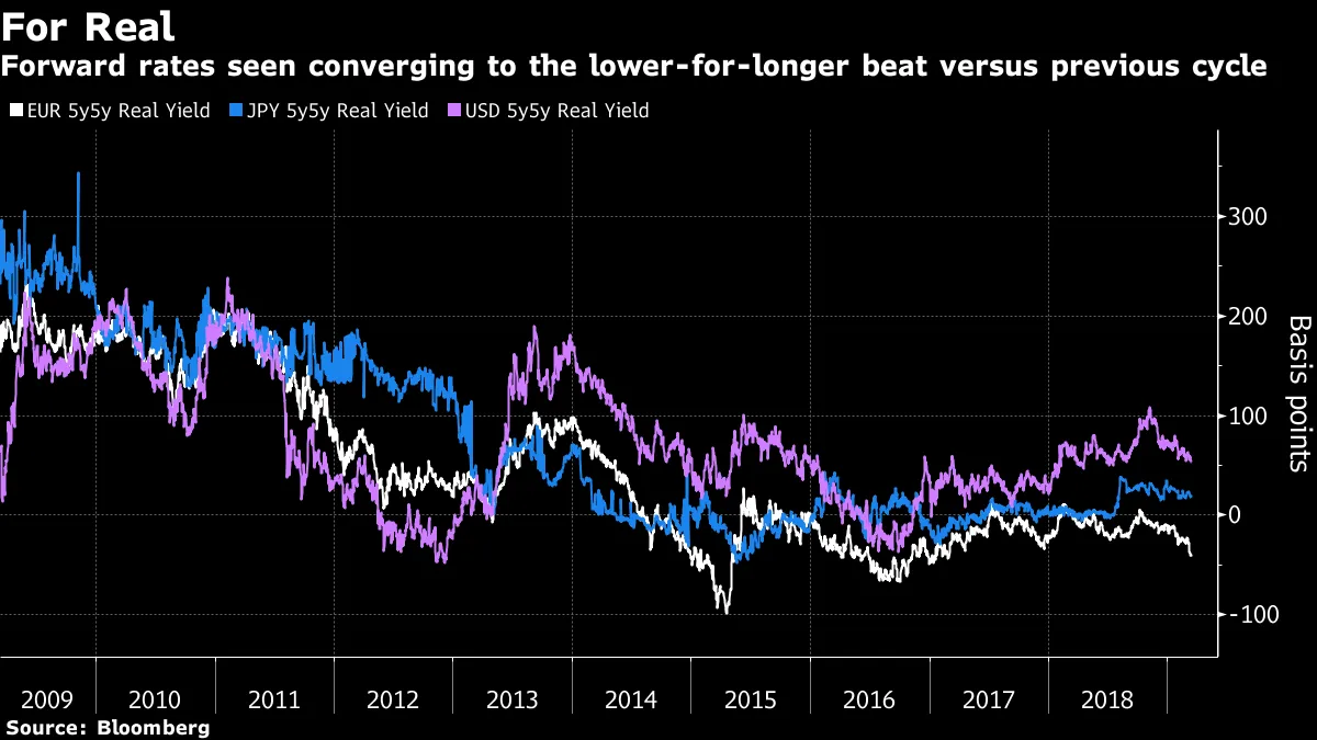 Capital Economics认为,经济增长缓慢、低通胀和美国货币宽松的有害鸡尾酒可能会促使欧洲中央银行明年重新启动其量化宽松计划。根据汇丰控股有限公司的说法,发达国家的远期利率市场正在接近平衡利率,或与经济在不 overheating 的情况下充分潜力扩张一致的通胀调整水平。