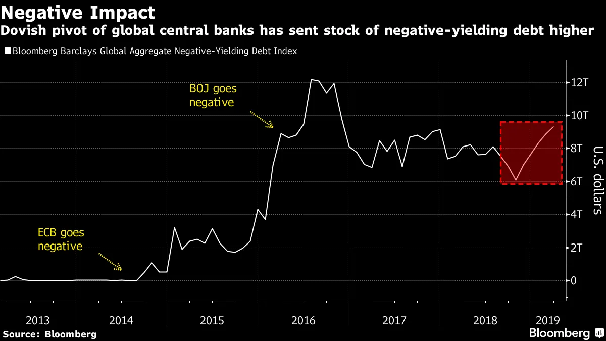 政府债券在涌向风险资产的潮流中部分发挥了作用。随着全球负收益债券的池子达到两年来的最高水平,投资者正在扩大投资范围,以满足回报目标,即使公司在经济增长放缓时将难以偿还债务。