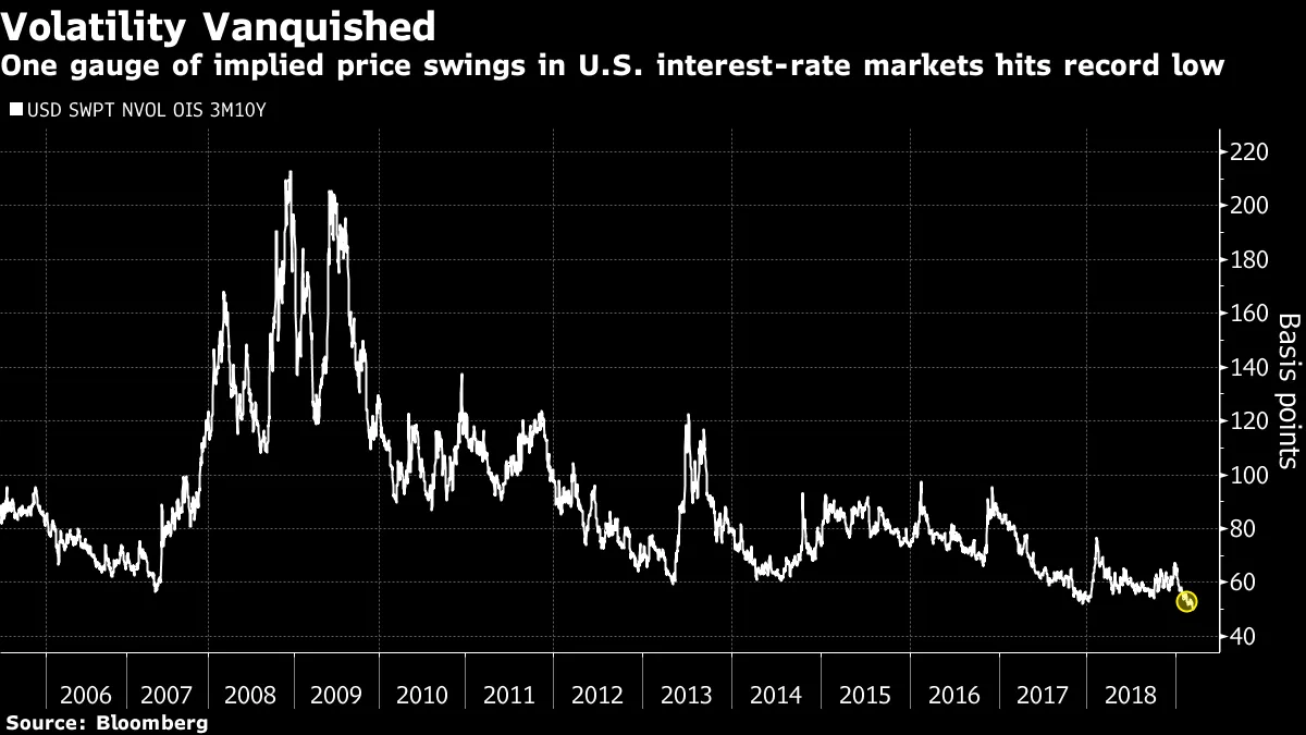 在商业周期转向衰退模式之前,利率交易者可能希望避免有信心的方向性押注。“在当前历史低位,完全做空波动性并不吸引人。当市场参与者表现出愿意在任何反弹中出售隐含波动性时,完全做多波动性也很困难,”法国外贸银行的利率策略师在一份报告中写道。当然,如果价格波动最终向上突破,这一切都在积累麻烦——尤其是对于超配发达市场债务的快钱交易者。“像CTA或风险平价基金这样的典型趋势跟随程序的投资组合敞口继续偏向于发达市场债券的多头,这也意味着发达市场债券市场逐渐变得容易受到利率波动意外增加的影响,”野村控股公司的量化策略师高田正成在一份报告中写道。