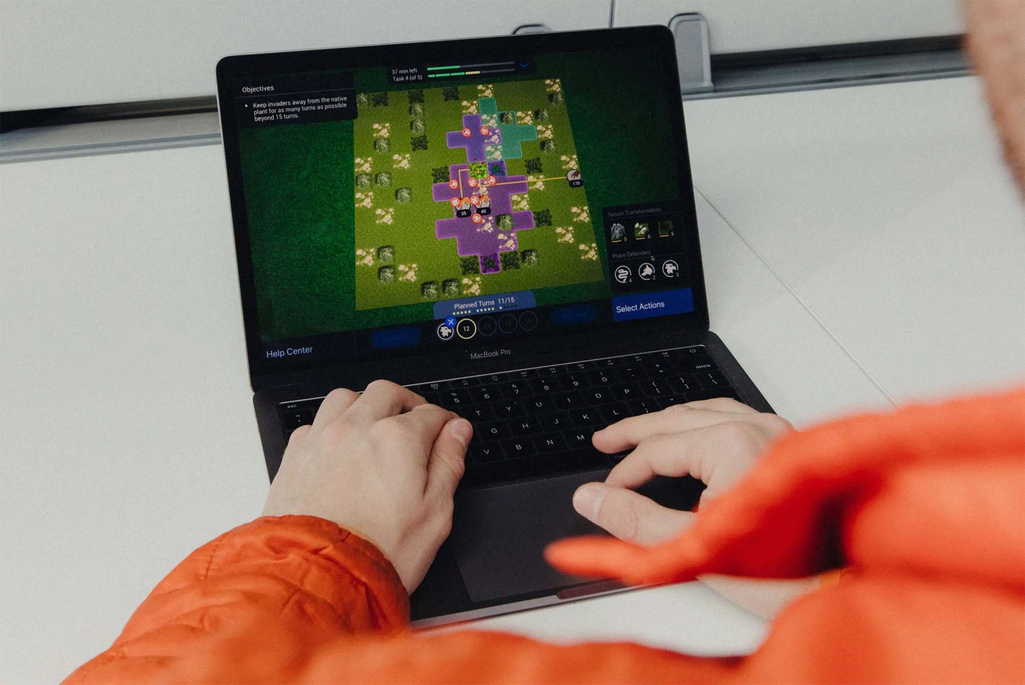 在她登录后,屏幕上出现了一个郁郁葱葱的热带岛屿动画。她面临三个不同的场景,每个场景都描绘了一个受到压力的自然环境。在岛屿的一部分,她必须制定一个计划,以拯救即将面临自然灾害的本土物种;在另一个场景中,她被指示创建一个能够承受高水平毒性的珊瑚礁生态系统。她穿越了晶莹剔透的野生动物、鱼类、植物、山脉和海洋水域的场景。“我完全沉浸其中。我忘记了周围的世界,”她说。卡拉斯托亚诺娃在半小时内完成了任务,感到一阵肾上腺素激增,就像刚刚玩了一场视频游戏。(她通过了两轮面试,并在十二月获得了工作机会。)
