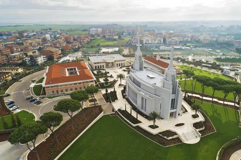 罗马神庙综合体的广场。智力储备公司。早在2006年,摩门教领袖们就在意大利申请官方宗教地位,甚至雇佣了一位华盛顿游说者来推动他们的事业。官方地位于2010年获得,40,000平方英尺的神庙建设也在那一年开始。