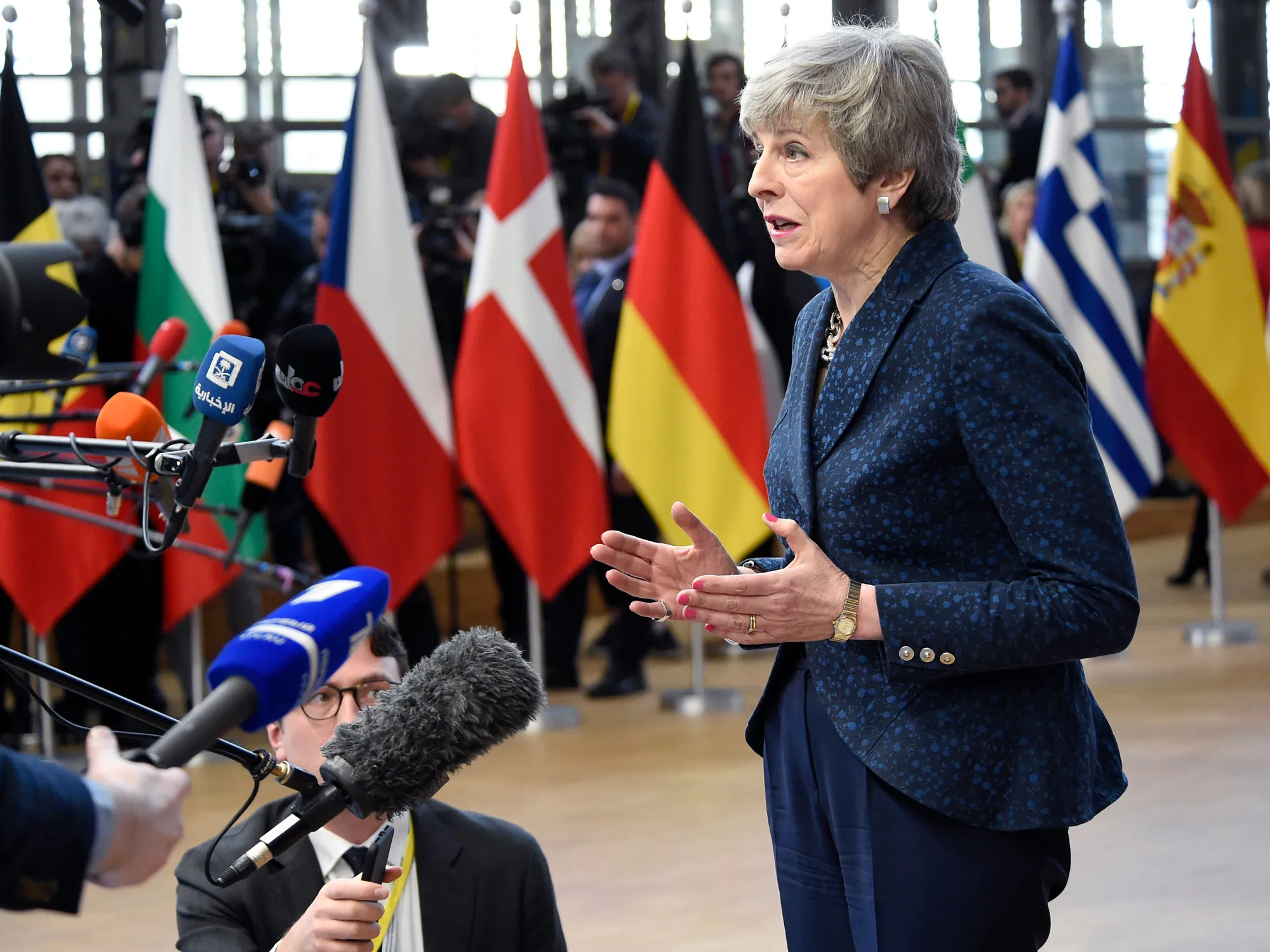 英国首相特蕾莎·梅在2019年3月21日抵达布鲁塞尔时向媒体发表讲话,这是关于英国脱欧的欧盟峰会的第一天。- 欧盟领导人在3月21日和22日于布鲁塞尔举行最后一次欧盟峰会,讨论英国计划退出欧盟的事宜。(照片由约翰·蒂斯/法新社提供)(照片版权应注明约翰·蒂斯/法新社/盖蒂图片社)摄影师:约翰·蒂斯/法新社梅今天在布鲁塞尔。摄影师:约翰·蒂斯/法新社