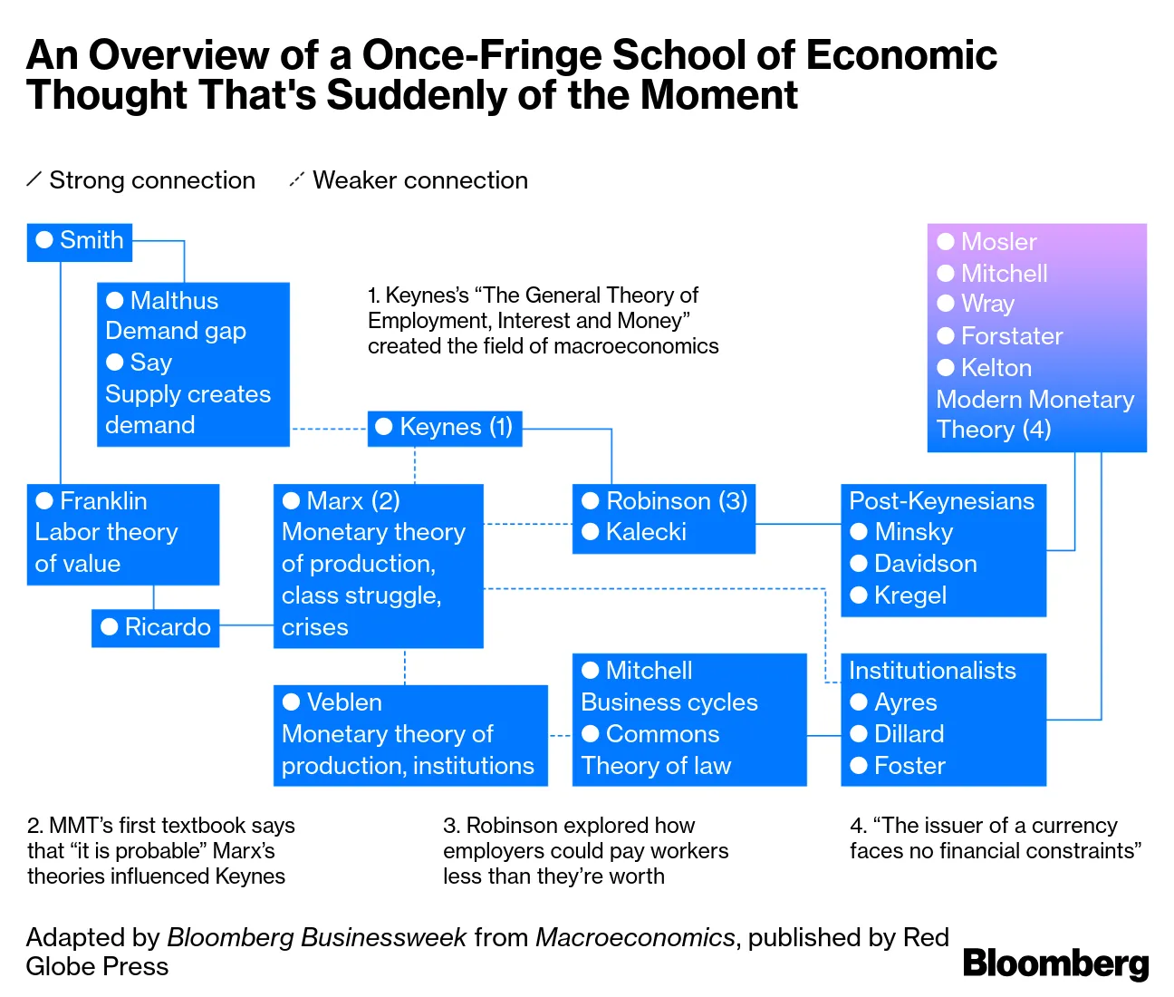 **自由印钞。打破垄断。**征税,但仅限于遏制通货膨胀和不平等。忘记管理利率。确保每个人都有工作。这些是现代货币理论的一些原则,值得深入探讨它是什么、来源于何处以及其利弊。主流经济学家认为其正确的部分并不新颖,而其新颖的部分并不正确;现代货币理论支持者则表示他们忽视了大局。我们深入研究了第一本关于它的学术著作,573页的宏观经济学,以便你不必这样做。这是我们的初学者指南。