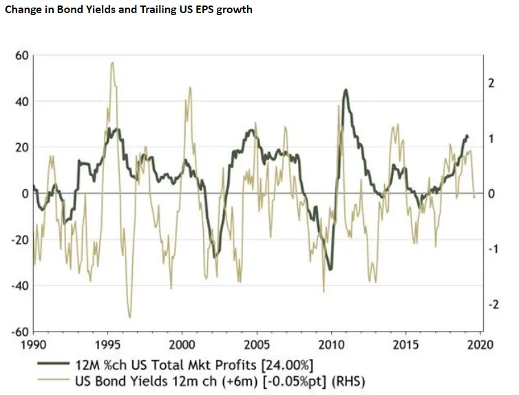 最后,为了证明这些措施往往相互确认,绝对策略显示债券收益率的变化确实往往会引领总利润的变化。目前,在债券收益率急剧下降之后,这应该是一个坏兆头: