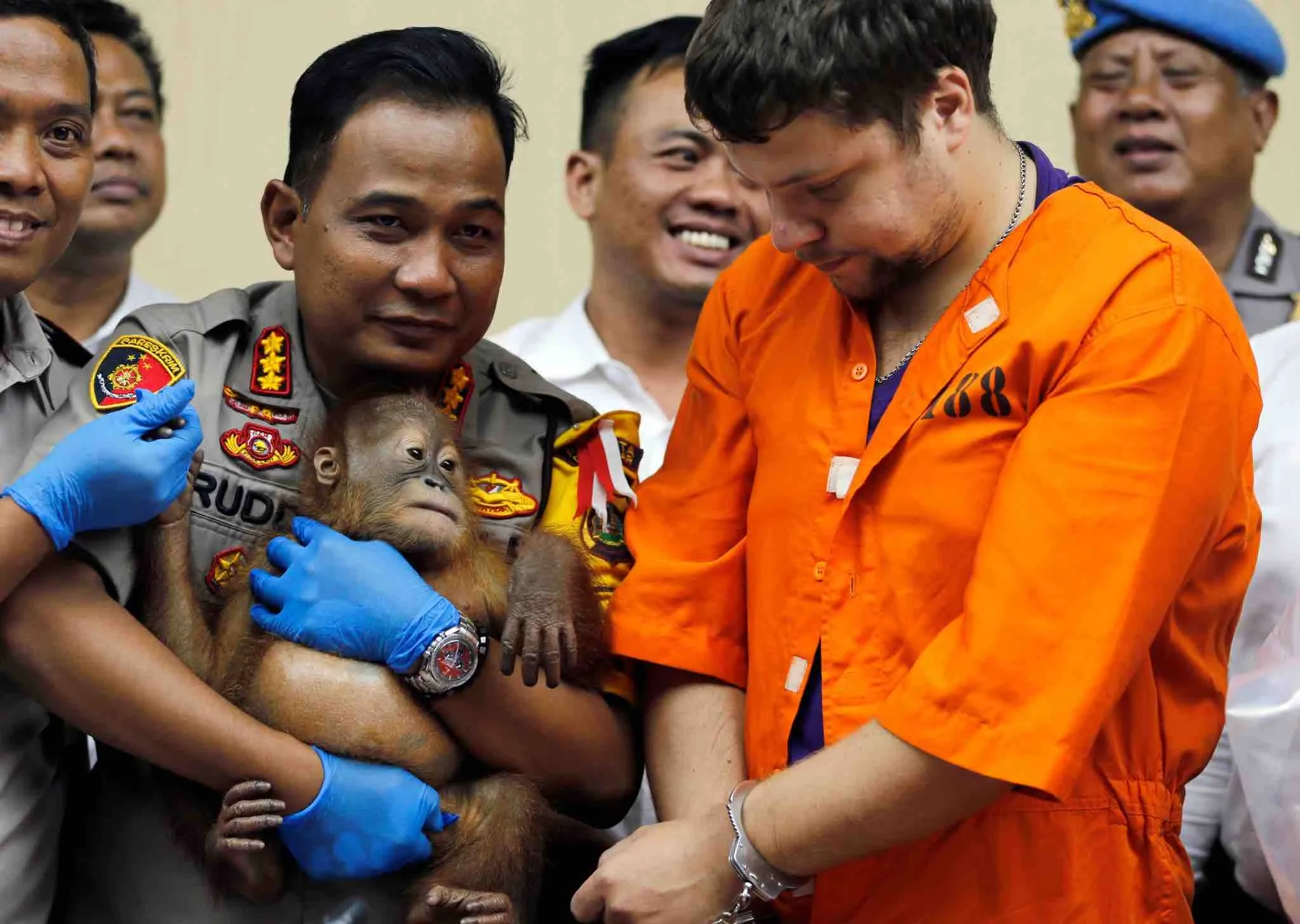 **游客被捕。**一名俄罗斯男子在 试图 将一只被麻醉的猩猩走出印度尼西亚时被捕。