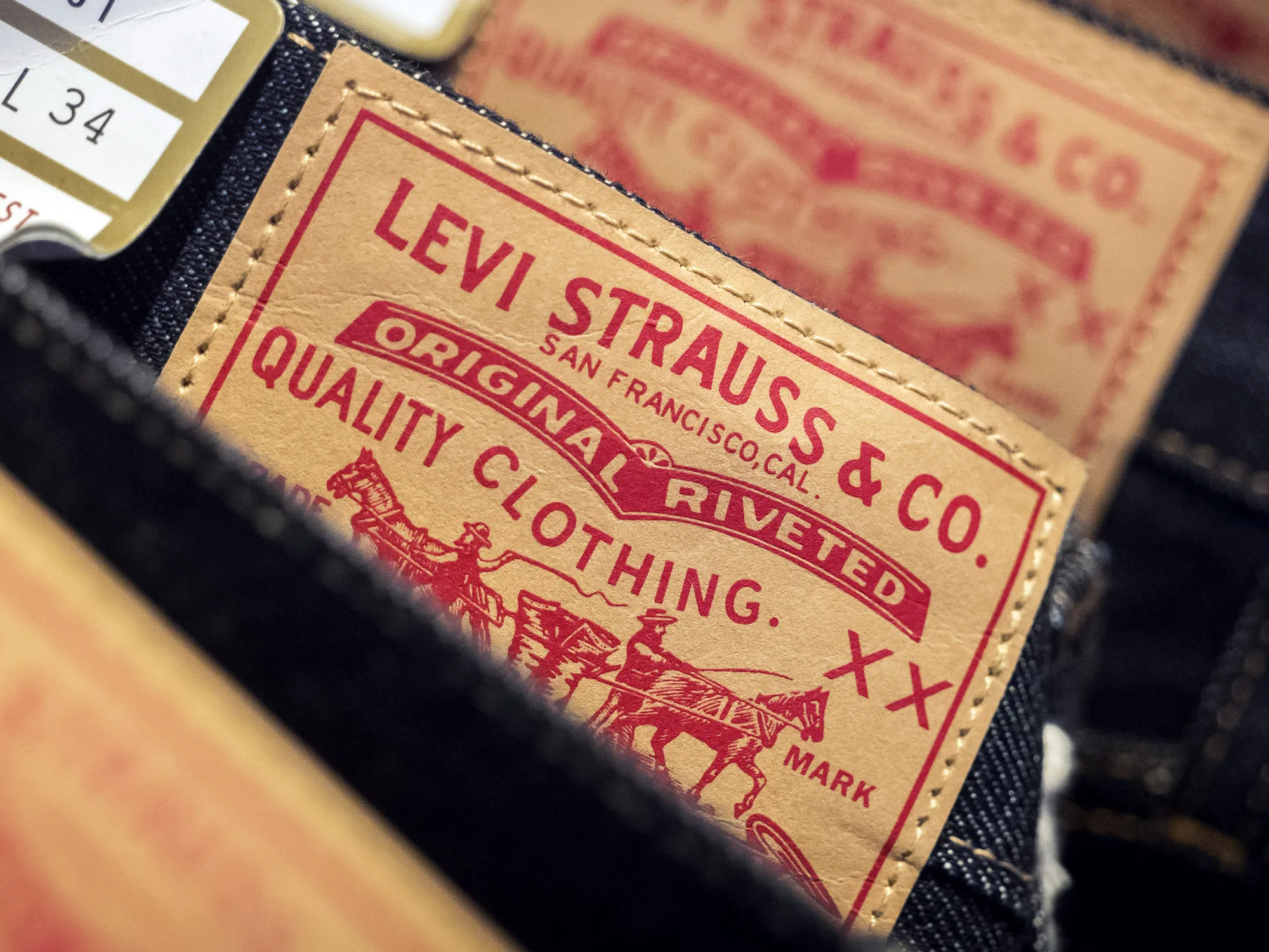 2019年3月18日,Levi Strauss & Co.的标签出现在美国加利福尼亚州旧金山公司旗舰店内出售的牛仔裤上。Levi Strauss & Co.的首次公开募股,目前设定为3670万股,预计每股定价在14到16美元之间,预计将在3月20日定价,根据纽约证券交易所网站的信息。摄影师:彭博社/彭博社Levi Strauss & Co.本月进行了6.23亿美元的首次公开募股,几天内就收到了愤怒股东的反馈。动物权利组织PETA购买了股份,以抗议该公司使用牛皮作为缝制在牛仔裤后面的标志性补丁。