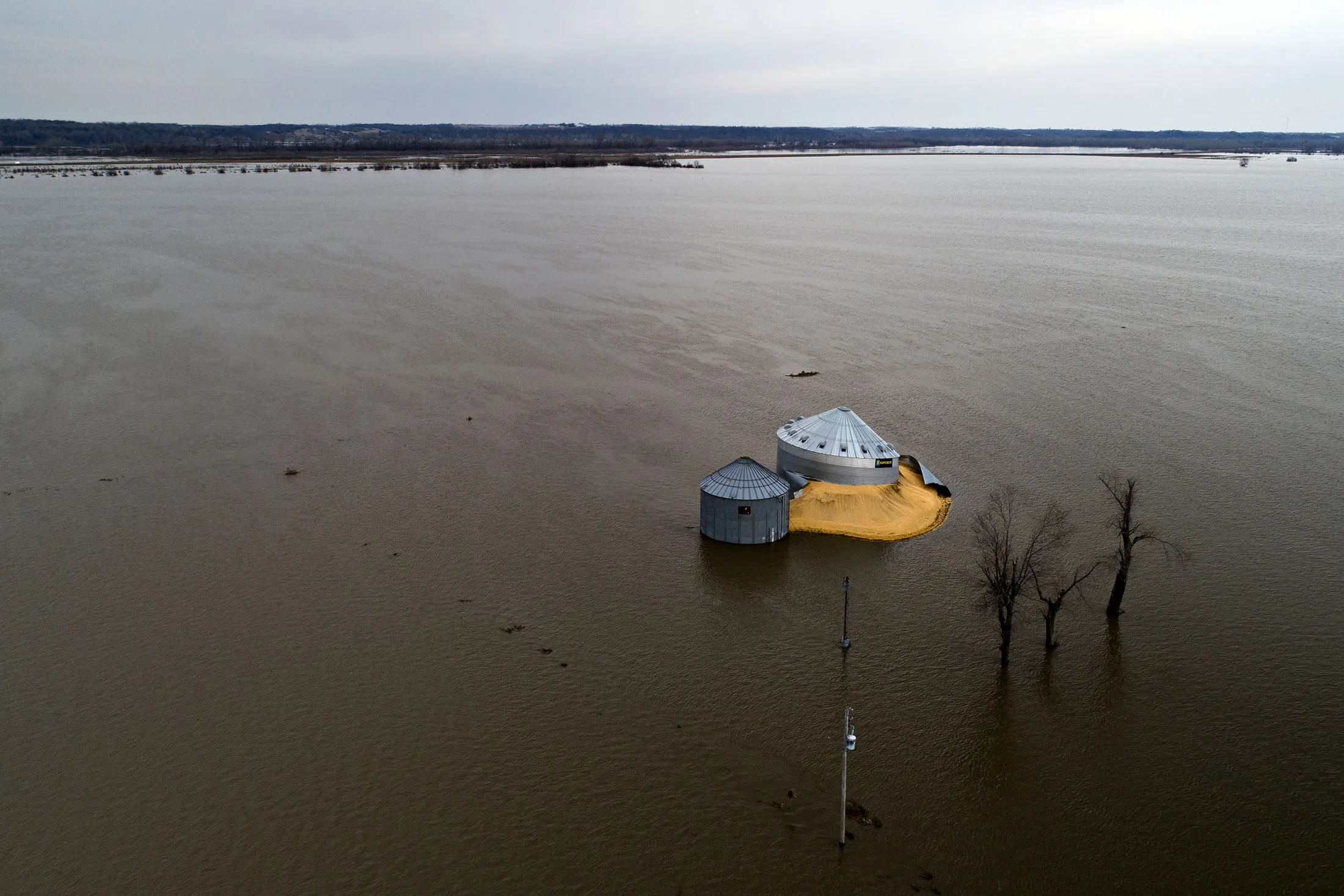 玉米从一个倒塌的粮仓中倾泻而出,漂浮在美国爱荷华州瑟曼上空的洪水中,拍摄于2019年3月23日星期六。根据联邦气象官员的说法,过去一周对中西部造成严重破坏的洪水可能预示着美国最糟糕的洪水年之一。摄影师:丹尼尔·阿克创纪录的洪水使农场和铁路瘫痪,给中西部带来了环境灾难,增加了贸易战带来的困难。在内布拉斯加州阿尔比恩的一家瓦莱罗能源乙醇厂后,玉米价格下跌。水位至少达到八个超级基金场地,遍及三个州。