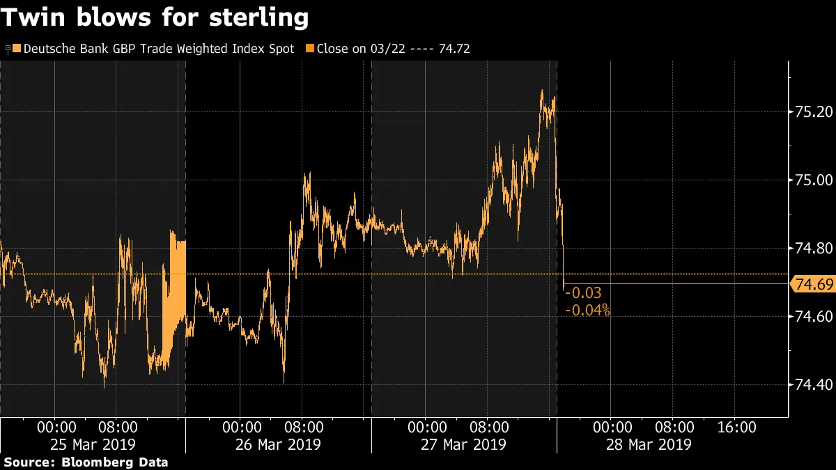 但到晚上结束时,英国并没有更进一步。当来自阿尔斯特的代表团排除支持她的协议,告诉她她的牺牲还不够时,她作为首相的职业生涯反而被延长。与此同时,议员们投出的指示性投票显示,正如预期的那样,议会的多数未能就任何提供的选项达成共识。两个选项获得的票数超过了梅的协议:留在欧盟关税同盟(市场积极)和举行第二次公投(市场消极)。总体而言,市场积极的“软”脱欧稍微更近,但这将以加剧不确定性的代价为代价。恰如其分的是,这使得英镑在贸易加权基础上,正好回到了本周开始时的水平。