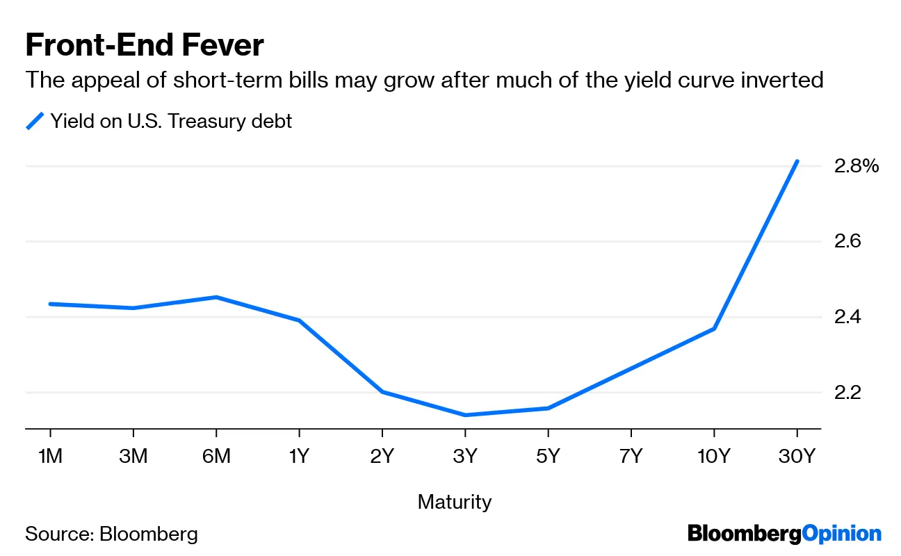 短期利率高于长期利率可能会导致 投资者大量购买现金和类似现金的债务,写道 布赖恩·查帕塔。