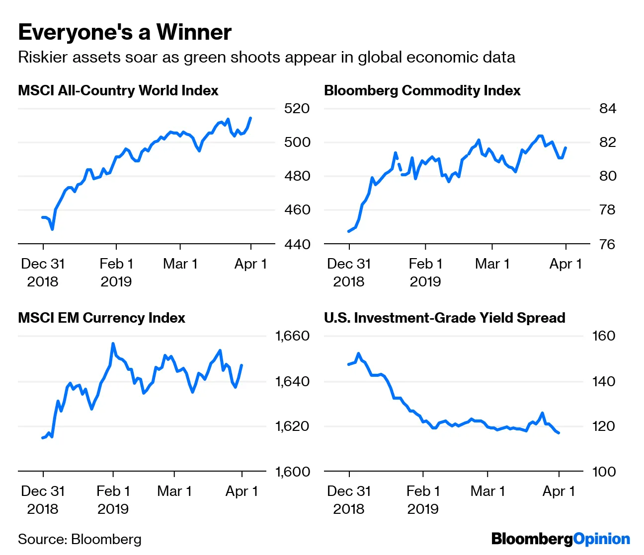 市场已经感受到春天的气息,但投资者应该注意资产价格和全球经济的风险,罗伯特·伯吉斯为彭博社观点撰文。是的,来自中国和其他地方的令人惊讶的乐观数据推动了股市,但中央银行可能不会像希望的那样大幅降息,而美中贸易战尚未结束。