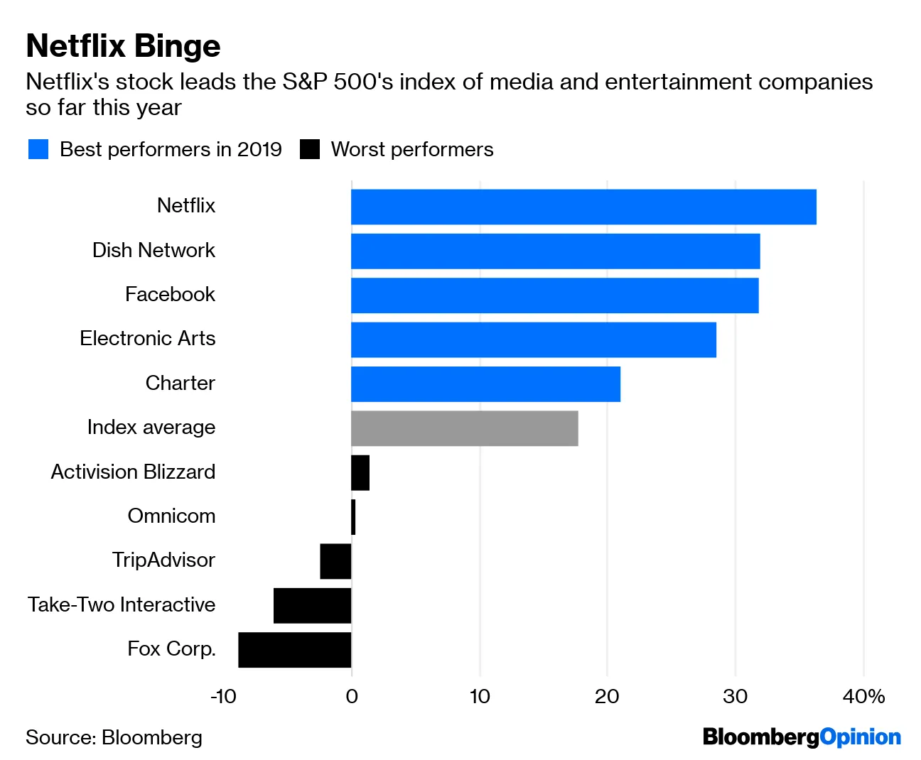 - **Netflix即将迎来真正的竞争,**以及对其高估值的首次真正考验,塔拉·拉查佩尔为彭博社观点撰写。随着迪士尼、AT&T和苹果推出自己的类似Netflix的产品,它有理由感到担忧。如果有人能把新产品做好,那就是迪士尼。但尽管AT&T面临债务负担、重组和丑闻,它可能拥有最好的资产。