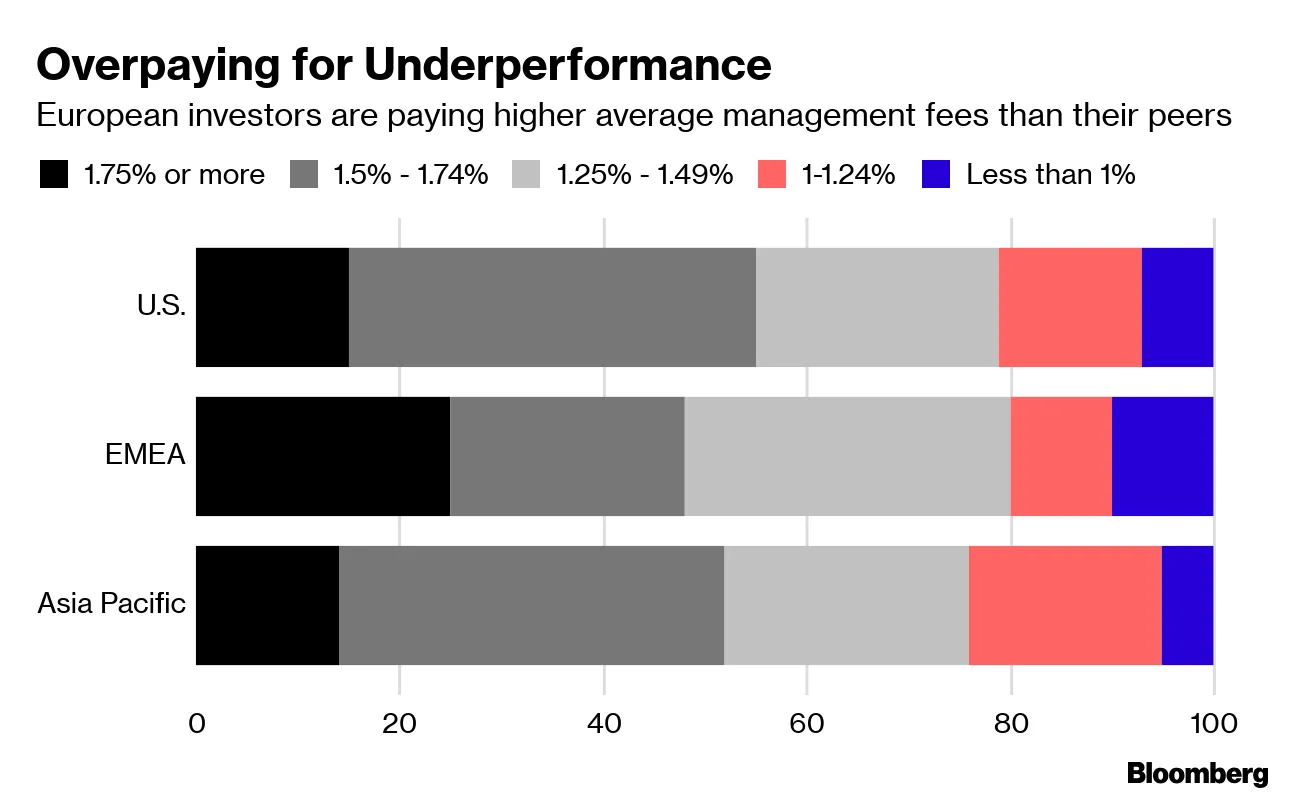 欧洲对冲基金投资者是受虐狂吗? 这是马克·吉尔伯特在彭博社观点中思考的问题。调查显示,他们的投资不仅比美国和亚洲同行表现更差,而且支付的费用也更多。因此,发现42%的欧洲受访者计划在今年增加对对冲基金的投资,这让人感到震惊——这比他们的同行多得多。