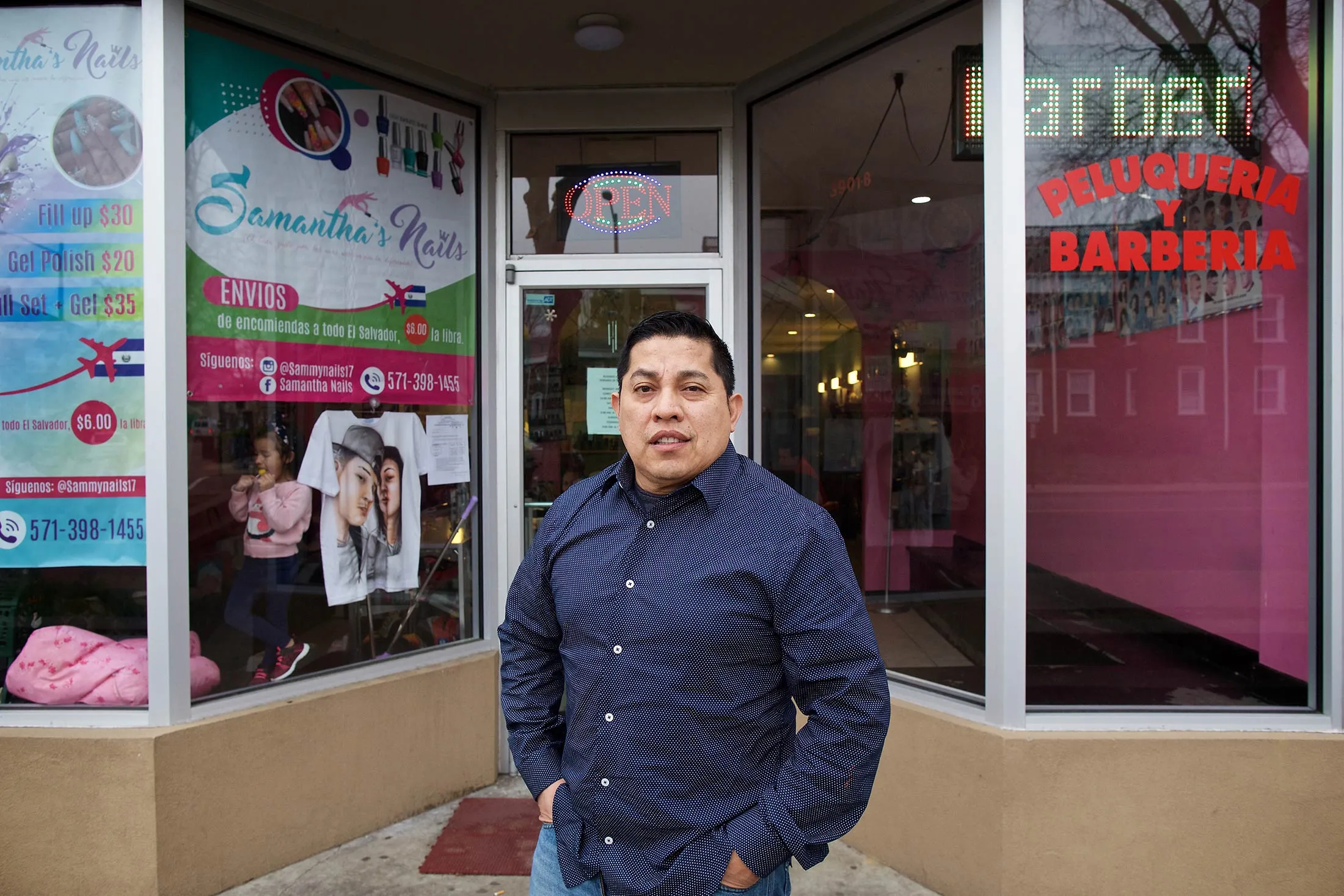 亨弗·帕尔马在弗吉尼亚州阿灵顿的阿兰德里亚地区的家族商店外。