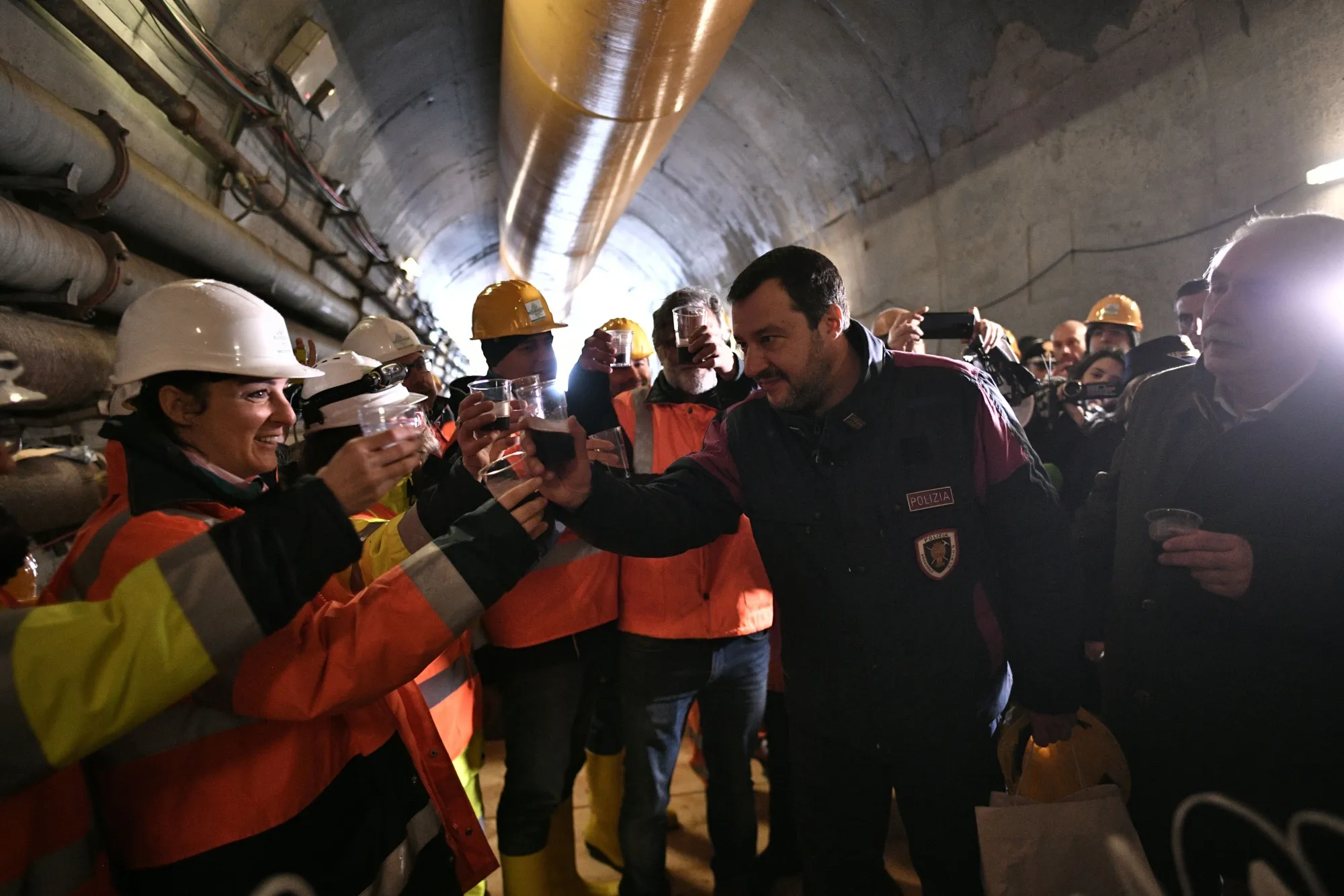 马泰奥·萨尔维尼在2019年2月1日访问意大利与法国之间的TAV高速铁路建设工地时为工人们祝酒。摄影师:马尔科·贝尔托雷洛/法新社通过Getty Images“萨尔维尼坚持的时间越长,他就能从五星运动和贝卢斯科尼那里吸引更多选民,并在南方建立起他的支持,”罗马路易斯大学的政治学教授罗伯托·达利蒙特说。