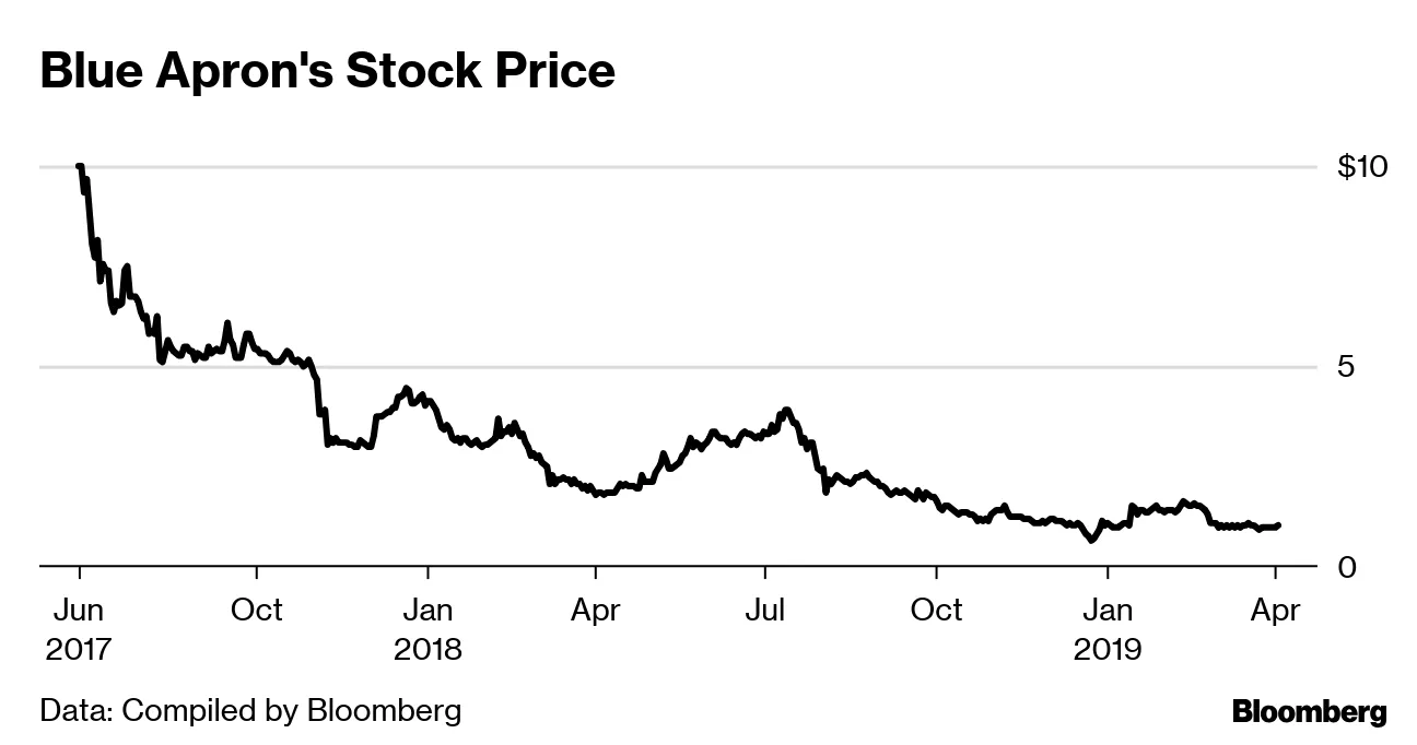 蓝围裙不仅是最近历史上表现最差的IPO之一。它也是一个警示故事,针对今年上市的独角兽,从Lyft到Uber再到Airbnb和Slack。这家餐盒订阅服务的纽约创始人说服投资者认为它的价值为$32亿,基于全国扩展的前提——但每顿两人餐约为$23,这让人不清楚这是否现实。这些独角兽产生了很多热议,但在许多情况下,他们的商业模式并没有什么特别之处。