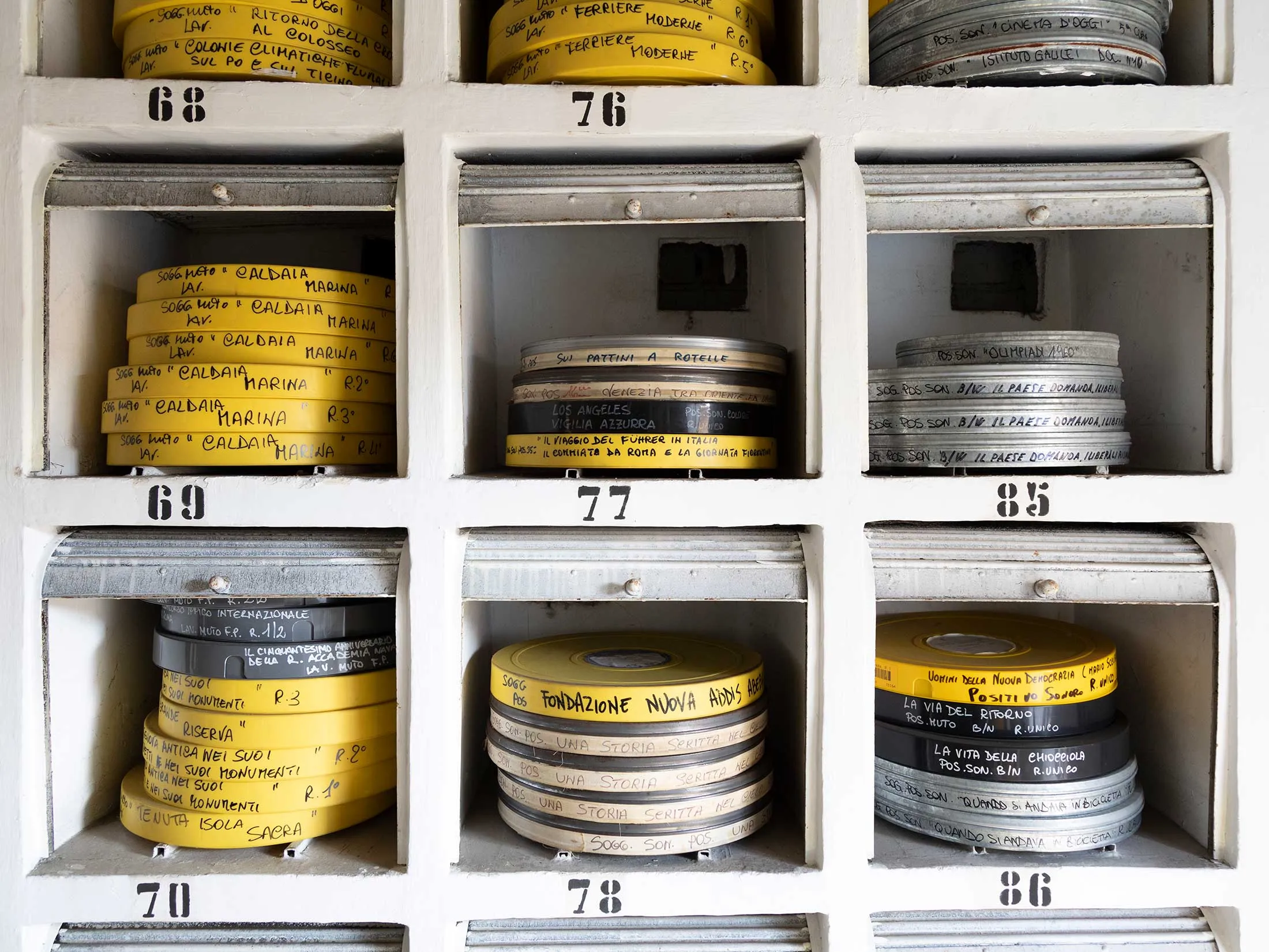 在Cinecittà的历史电影档案馆内部。摄影师:罗科·罗兰德利/TerraProjectCinecittà的历史本身可以成为一部史诗般的制作基础。它于1937年由贝尼托·墨索里尼创立,作为通过电影推广其法西斯议程的一部分,其档案馆中包含数千部战前新闻短片。在第二次世界大战期间盟军轰炸罗马后,重建的工作室成为1950年代和60年代一些最具标志性的电影的拍摄和后期制作地点:罗马假日、宾虚、克利奥帕特拉、弗朗哥·泽菲雷利的罗密欧与朱丽叶等。费德里科·费里尼在Cinecittà的场地上拍摄了他几部最著名的电影,包括甜蜜生活和八又二分之一。