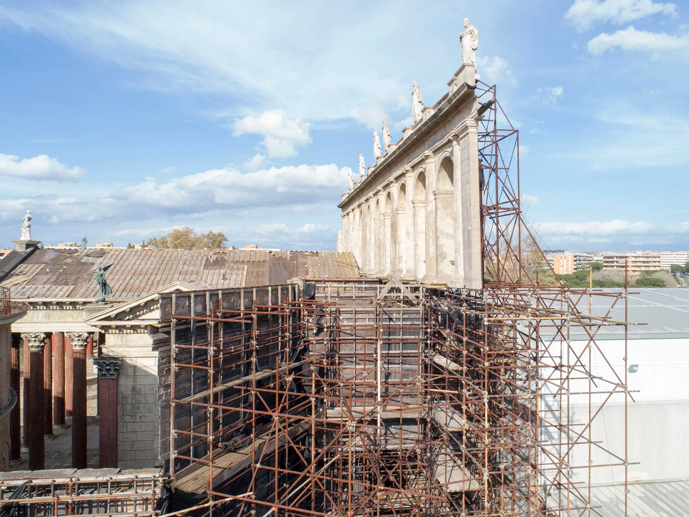 前景中的现代工作室,背景中的帝国罗马布景。摄影师:罗科·罗兰德利/地球项目