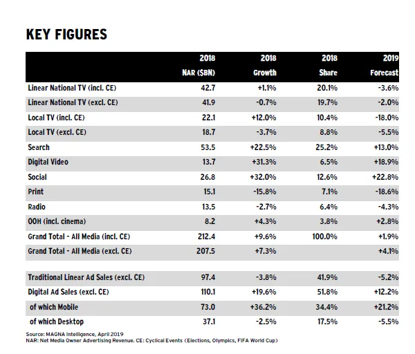 根据Magna Global的数据,亚马逊在2018年的广告销售额翻了一番,净赚60亿美元。去年的广告销售强劲,预计在2019年将再次增长。但亚马逊的增长是以其他参与者为代价的。电视广告销售正式进入下滑期。预计2019年全国电视广告销售将下降3%。而全球最大的广告公司谷歌正在失去一些业务给亚马逊。全球最大的广告买家WPP将原本打算给谷歌的资金转向了亚马逊,据《华尔街日报》报道。