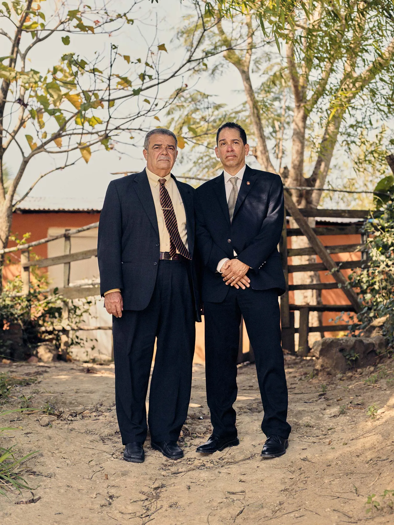 Chito Guzmán 和 Peña 在 Dicayagua Arriba。摄影:Christopher GregoryPeña 的一个表亲,José Bienvenido Guzmán,称为 Chito,曾对家族遗产如此痴迷,以至于在1990年代初期卖掉了他在曼哈顿北部的餐厅,搬到了多米尼加共和国,并在全国各地寻找能够证明家族主张的记录。这种痴迷让 Chito 失去了婚姻和大部分财富。然而,他对自己家族血统的记录如此详尽,以至于 Peña 感到与瑞士人有可能性。