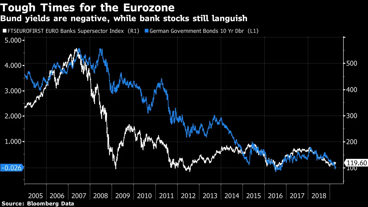 但下行风险并未消除。德拉吉之所以如此鸽派,是因为他对欧洲经济缺乏信心。欧洲银行的疲弱继续成为欧洲经济的一个隐患。而欧洲央行的最新消息已经足以将德国10年期国债收益率推回零以下。廉价资金可能有帮助,但如此低的利率削弱了银行提高盈利能力的尝试,并显示出缺乏经济信心。欧元区并没有处于强势地位来主导条款,另一个秋季的脱欧悬念可能会在欧洲经济更加岌岌可危的情况下发生。