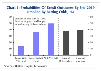就目前而言,英镑应该在走强,因为可怕的无协议脱欧的风险正在减退。英国政府正在结束其“无协议”的准备,假设某种协议现在是确定的,即使根据伦敦的资本经济学调查,博彩公司仍然认为无协议仍然是一个选项: