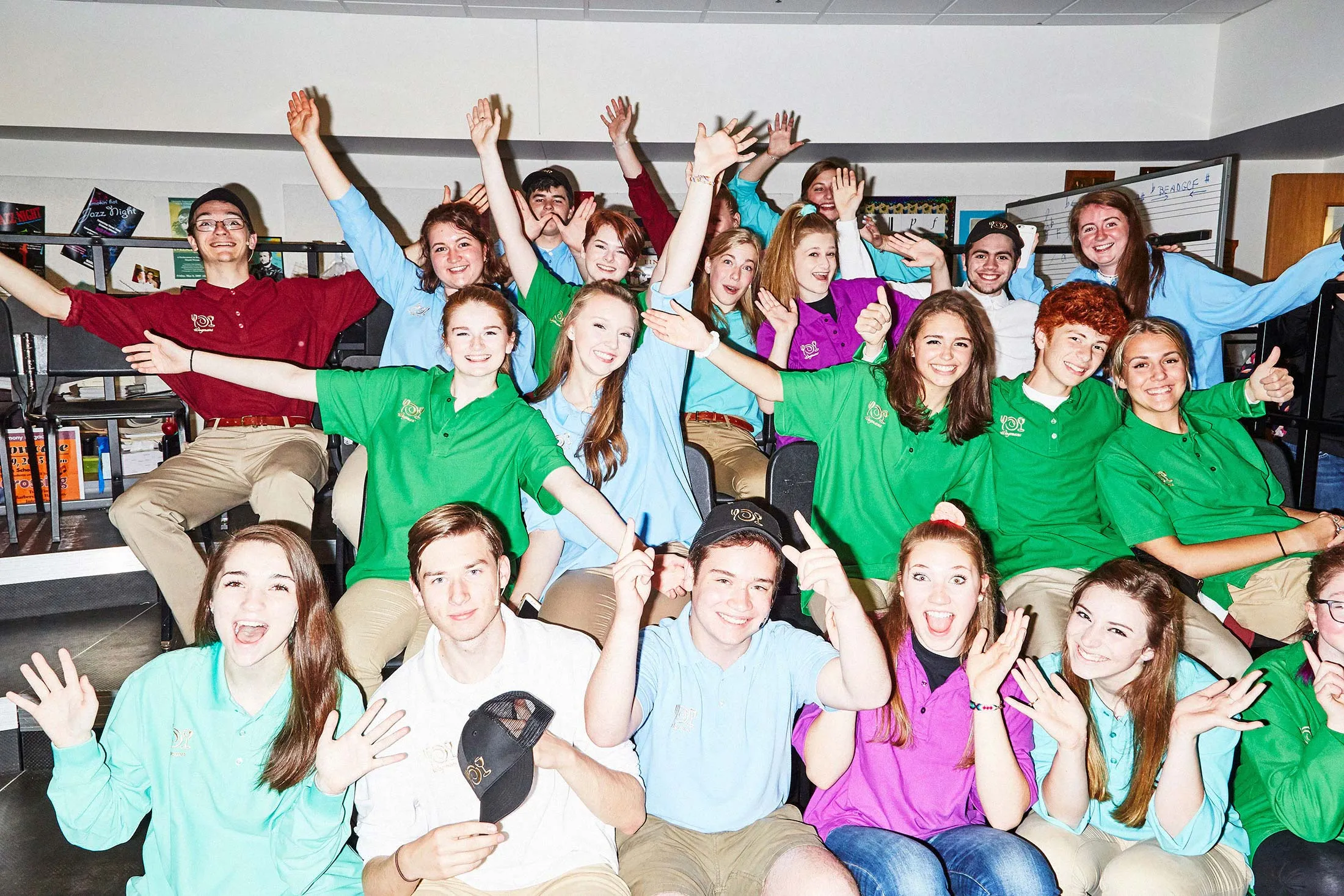 阿尔冈昆地区高中韦格曼……音乐剧 2.0在2018年6月7日于马萨诸塞州诺斯伯勒的演出开始前的后台。