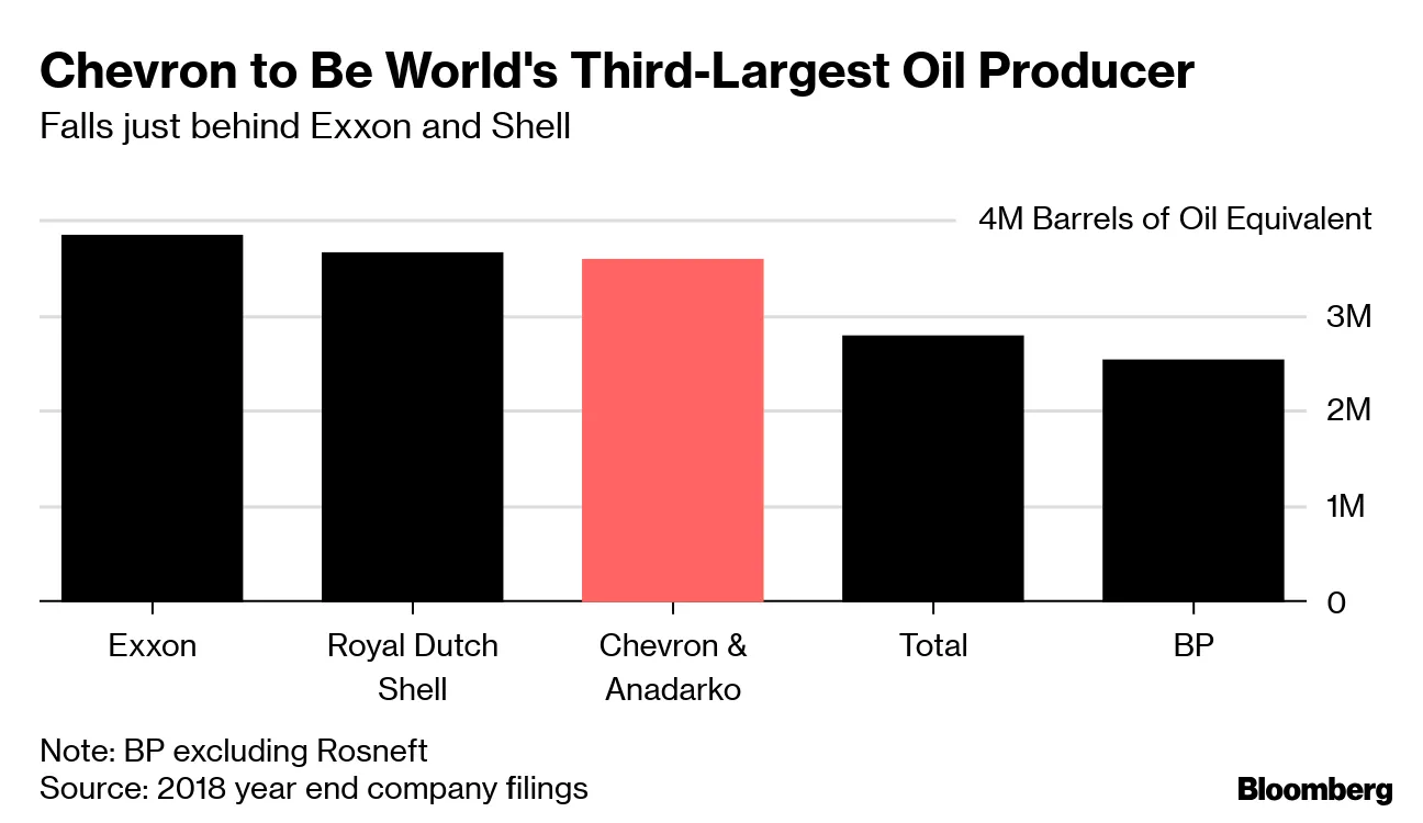 雪佛龙将收购安达科,这是一项330亿美元的投资,针对佩米安页岩油区和液化天然气,使其与埃克森美孚和壳牌并驾齐驱。每股65美元的现金和股票报价比昨天的收盘价溢价39%。该交易包括150亿美元的债务,使安达科的企业价值达到500亿美元。