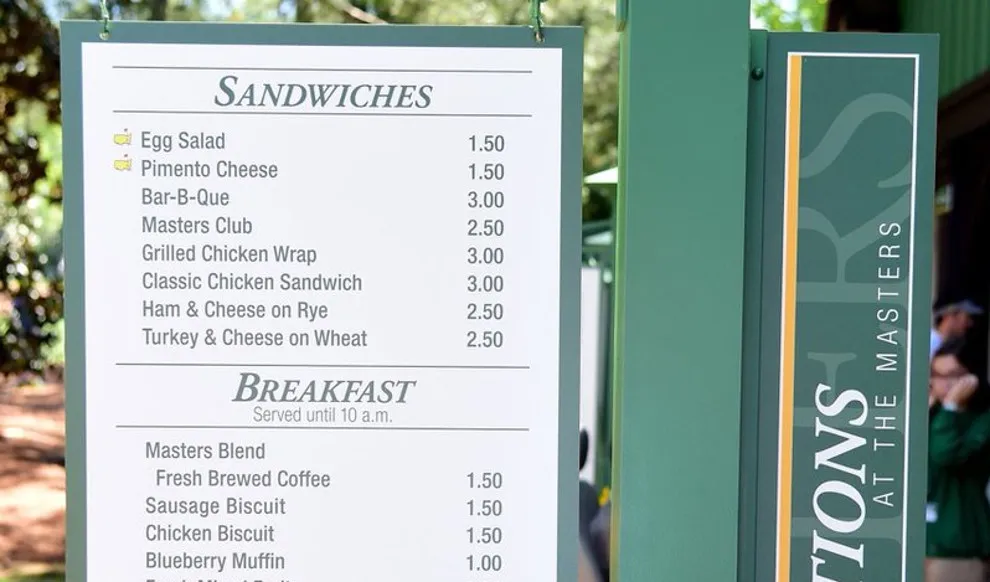 3. 你可以在大师赛上 便宜地吃东西**。**虽然这是高尔夫最独特的比赛,但其低价小吃的传统意味着顾客可以花不到60美元点一份每样的食物。