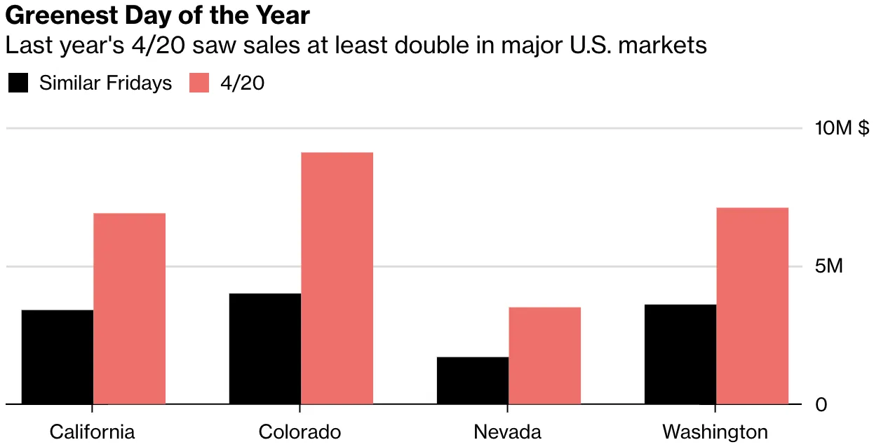 **吸食者的独立日。**根据新数据,大麻零售商应为4月20日或420日的销售额至少翻倍做好准备。