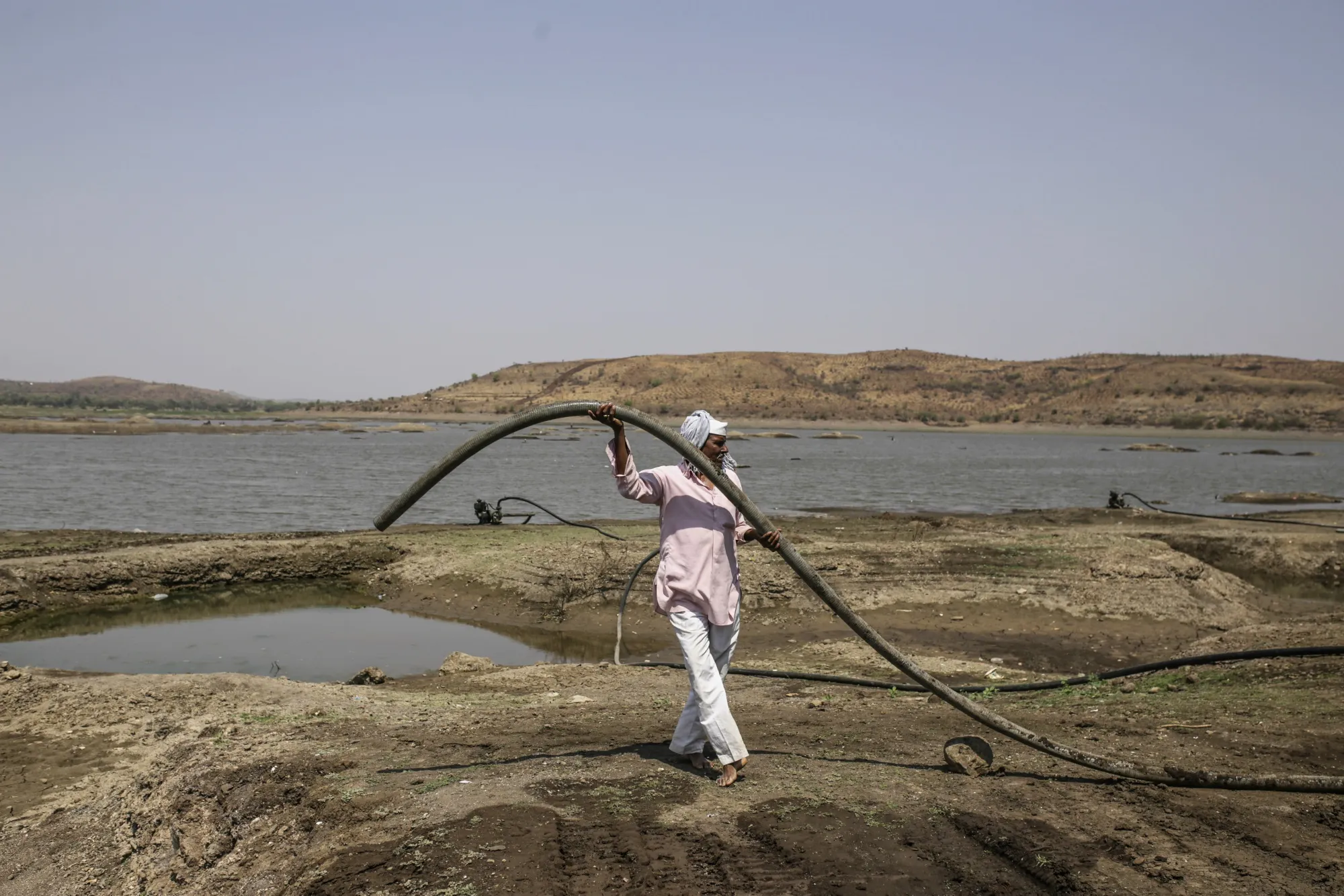 水管正在准备从Bendsura水库抽水。摄影师:Dhiraj Singh/Bloomberg但许多地方仍然干旱,促使居民寻找其他获取水源的方法。60岁的巴斯卡尔·苏克瓦西帮助运营六台柴油发电机,用于从比德的少数剩余水库向油罐车抽水,然后将水送往该地区的57个村庄。他本应每天获得150卢比的报酬,但他说几个月没有收到工资。