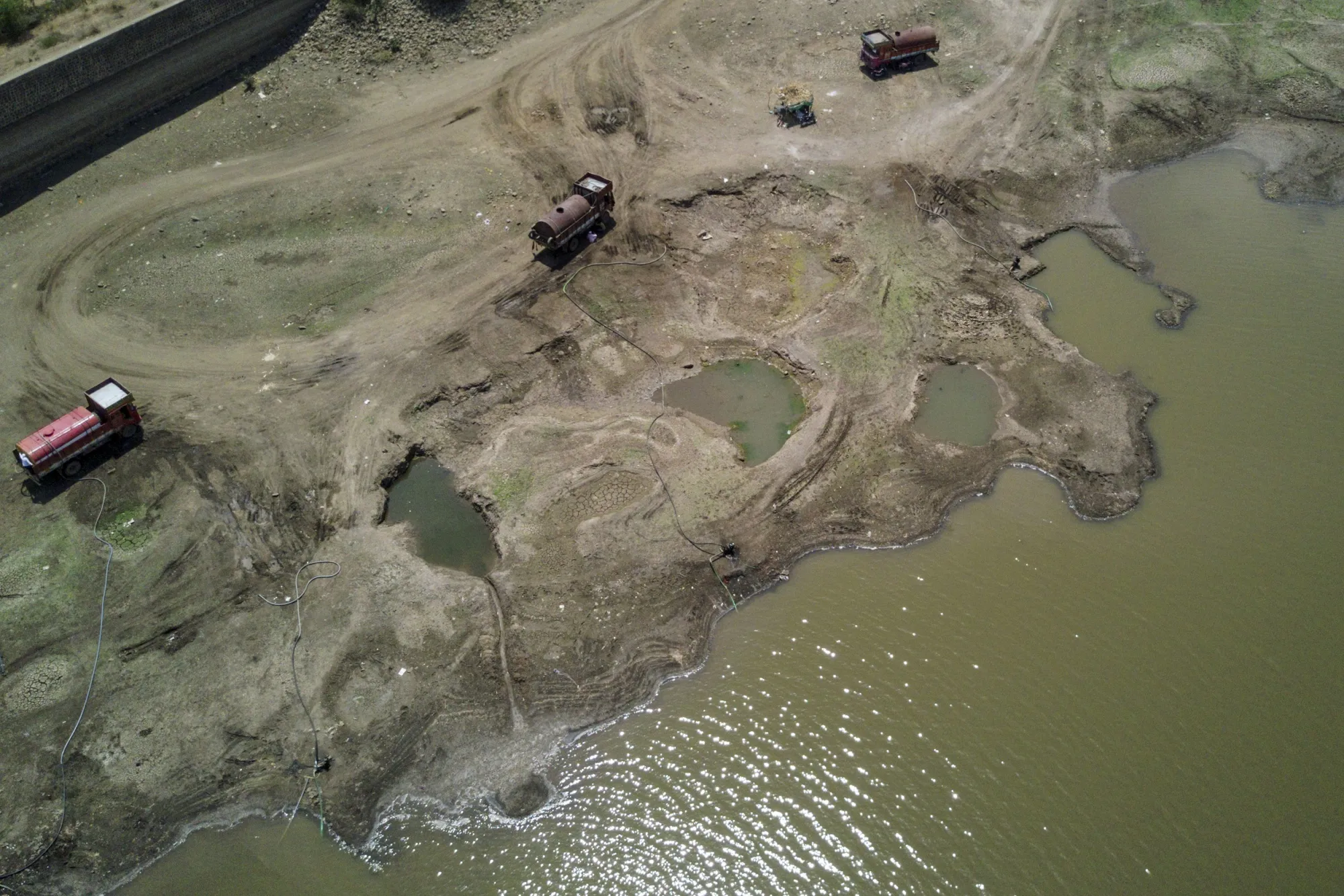 水在周日从Bendsura水库抽取,运送到马哈拉施特拉邦Beed区的油罐车中,该地区经历了三年的干旱,导致农作物歉收。
