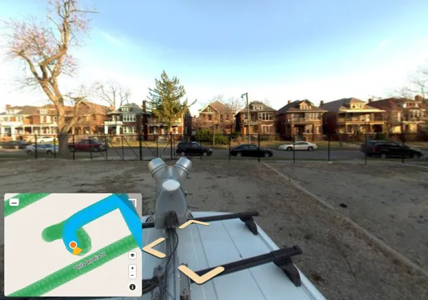 到目前为止捕捉到的所有底特律街道,已上传至Mapillary。Mapillary斯卢萨尔斯基之前在 洛夫兰科技公司工作,这是一个跟踪底特律止赎和荒废的数字测量初创公司。他获得了市政府的资金,将GoPro相机固定在一辆破旧的面包车上,逐街驾驶,逐步拍摄照片。他将这些照片上传到Mapillary,这是一个众包地图平台,类似于谷歌街景,将图像链接到地理坐标,并将它们拼接成一个连贯的地图。斯卢萨尔斯基和他的团队开发了软件,使市政官员能够搜索特定物业并将任务固定到特定位置。