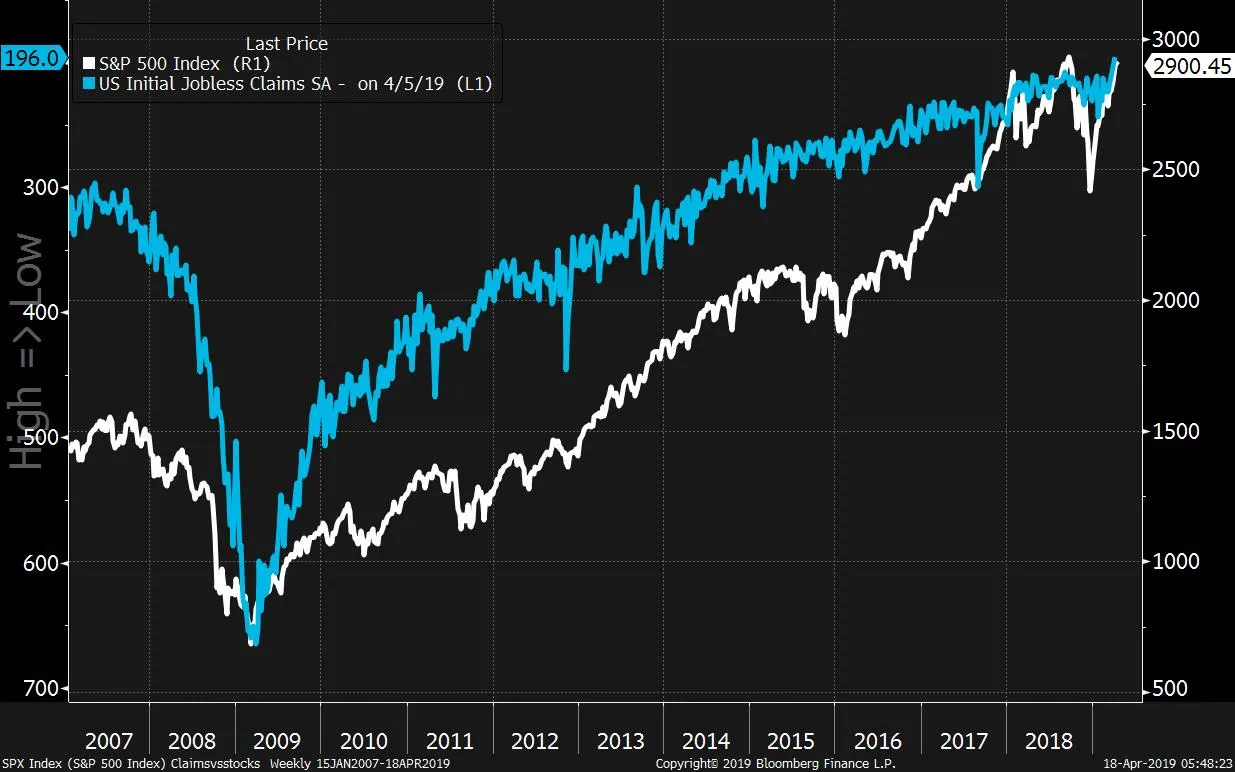 时不时你会听到一些悲伤的灵魂说“没有真正的经济复苏!这只是一场美联储膨胀的泡沫。”这些声音比以前少了很多。反驳这些观点的数据太多,以至于甚至不知道从何开始。尽管如此,多年来,我最喜欢的图表之一是将初次失业救济申请与标准普尔500指数进行比较。在图表上,你可以看到申请在2009年3月股市触底时达到了最糟糕的水平。两者的转折是同时发生的,提供了市场反弹与实际经济改善相吻合的真实证据。从那时起,我们见证了一个极其漫长的牛市,以及初次申请的持续改善。事实上,就在上周,我们得到了整个经济扩张期间最佳的申请数据。今天上午8:30,我们将获得一系列数据,包括零售销售、费城联储和最新的申请数据。预计这些数据会略微减弱,从196,000降至205,000,但在这个大致范围内的任何数据都表明,劳动力市场的情况仍然相当不错。