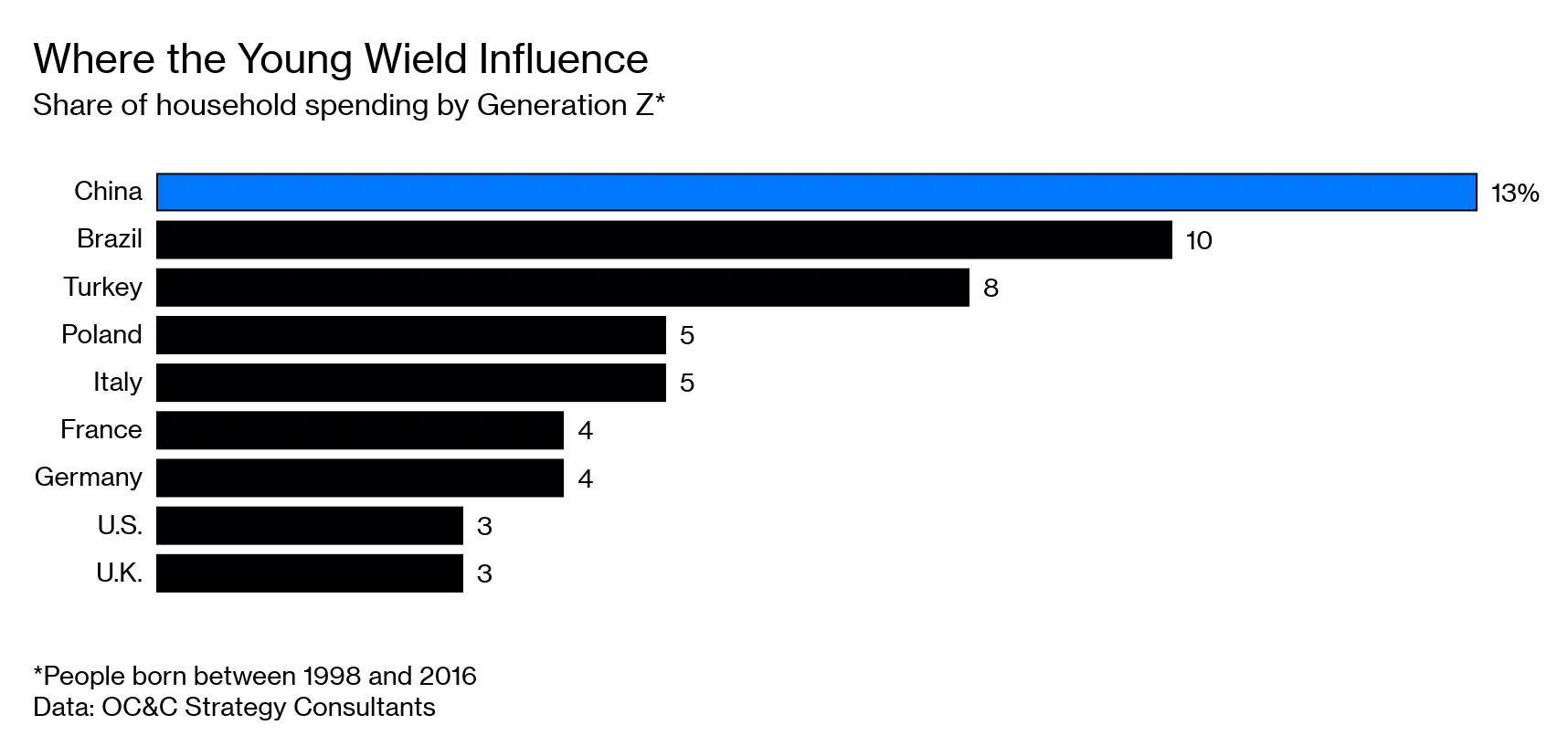 由于1996年后出生的中国购物者数量不断增加,零售业也在发生变化。对于被称为Z世代的消费者群体来说,社交媒体不仅是他们花时间的地方,也是他们花钱的地方。而且由于中国的独生子女政策持续了几十年,这导致父母和祖父母对家庭唯一的孩子倾注了额外的爱和关注,他们的行为对家庭支出产生了超乎寻常的影响。