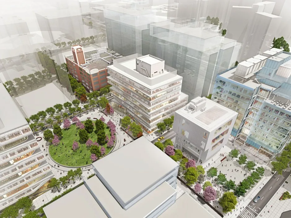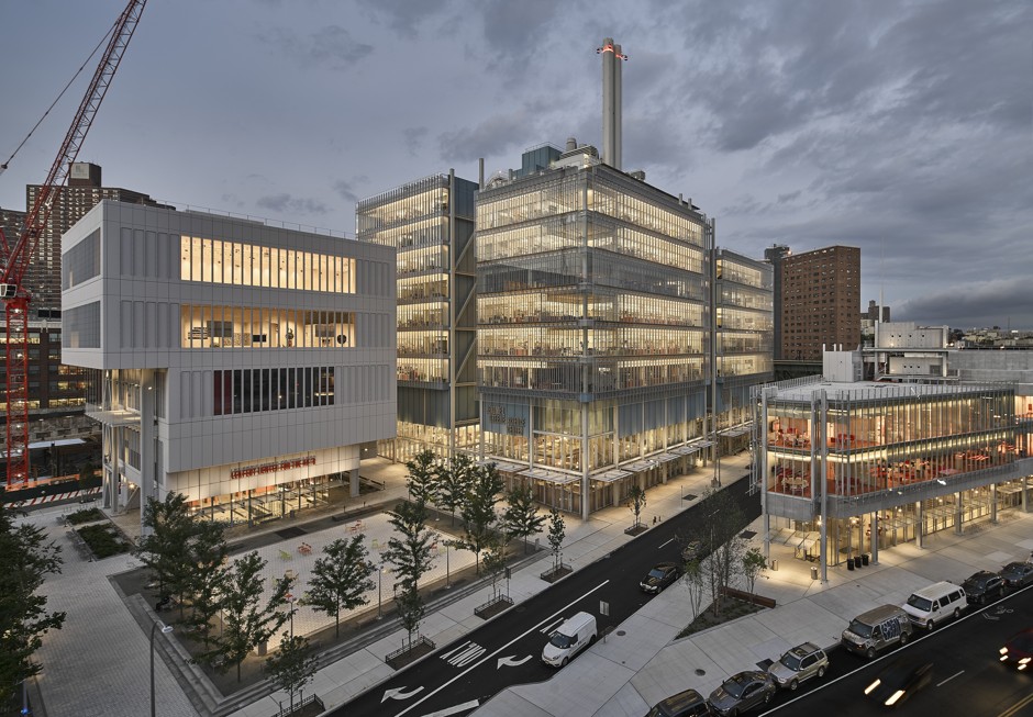 纽约大学与富裕的邻居和自身的教职员工就一个将过于庞大的建筑挤入其在格林威治村拥有的开放空间的计划进行了激烈的斗争。实际上只有一栋建筑已经开始施工,一块长方形的建筑由基兰·廷伯雷克和戴维斯·布罗迪·邦德设计,里面包含了教室、学习空间、公共区域和体育设施等愿望清单上的项目,以及教学空间和表演艺术的舞台。屋顶上突出的尖塔用于学生宿舍和教职员工公寓。洛克菲勒大学通过听取拉斐尔·维诺利建筑师的建议,在曼哈顿的FDR大道上建造了一座绿色屋顶、长达1000英尺的实验室,为其发展提供了空间(并保护了丹·凯利设计的花园)。