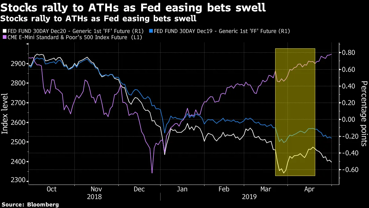 人们认为,持续的通货膨胀不足将足以成为降息的理由。事实上,解释4月底股市创下历史新高与美联储定价暗示放松政策越来越可能之间的分歧,最好的也是唯一的方式是假设通货膨胀的结果是美联储在2019年立场的全部。